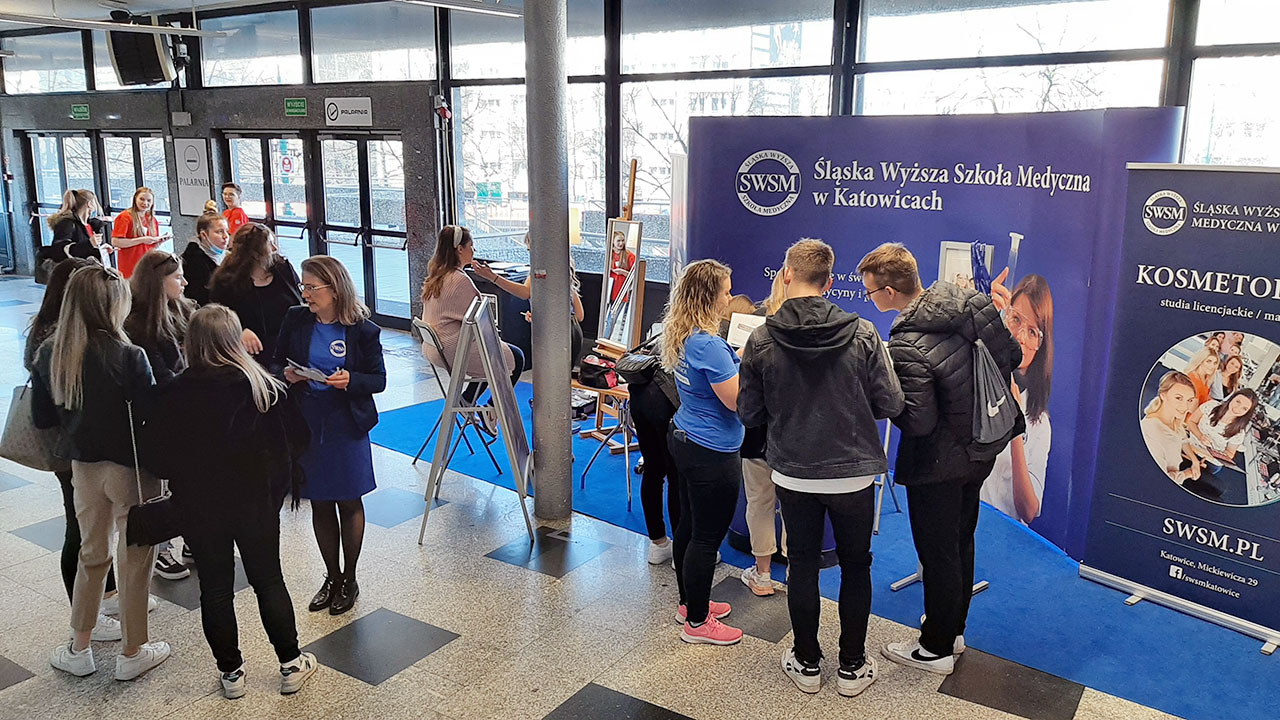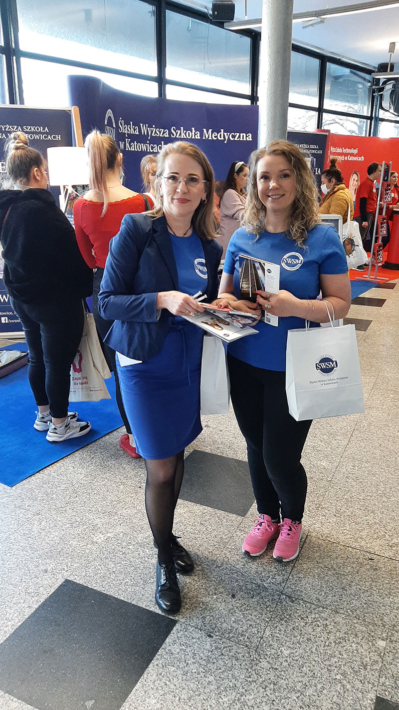 W dniach 22-23 marca 2022 r. Śląska Wyższa Szkoła Medyczna wzięła udział XXIV Ogólnopolskich Targach "EDUKACJA 2022" w katowickim Spodku. Nasza oferta jak zwykle cieszyła się ogromnym zainteresowaniem, a nasi studenci z zaangażowaniem odpowiadali na Wasze pytania dotyczące studiów w SWSM. Mamy nadzieję, że przekonaliśmy Was, że warto postawić na Dietetykę lub Kosmetologię i już wkrótce zobaczymy się w murach Uczelni.