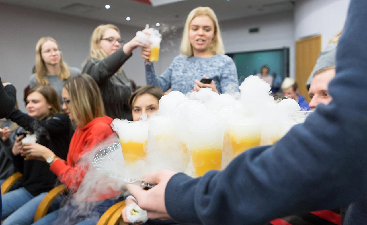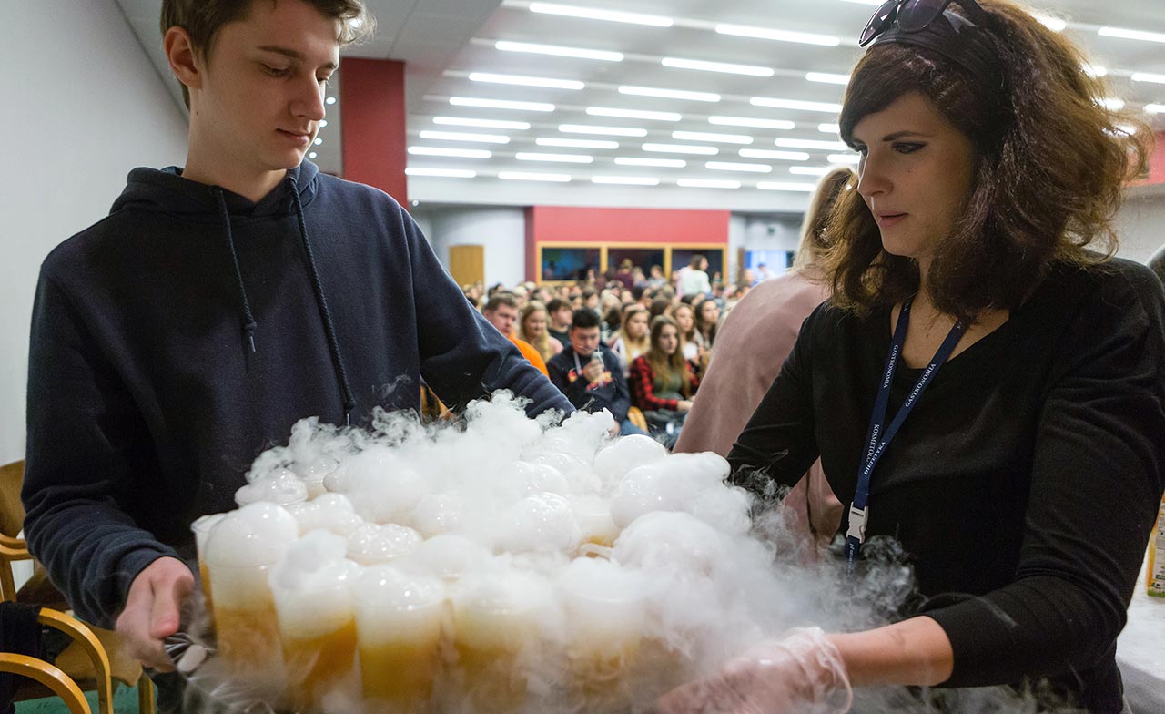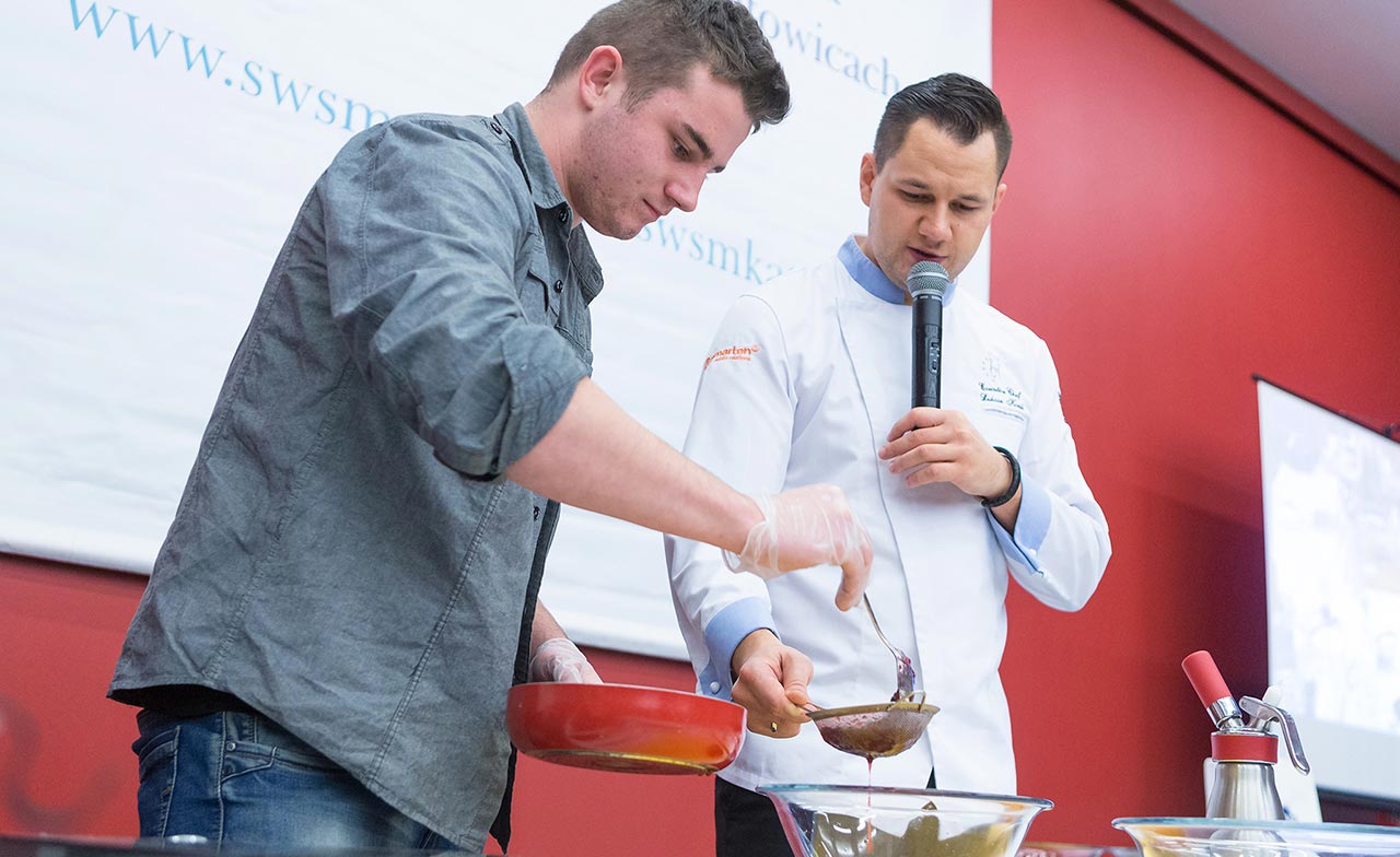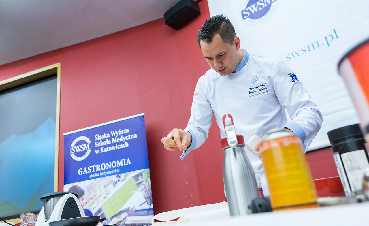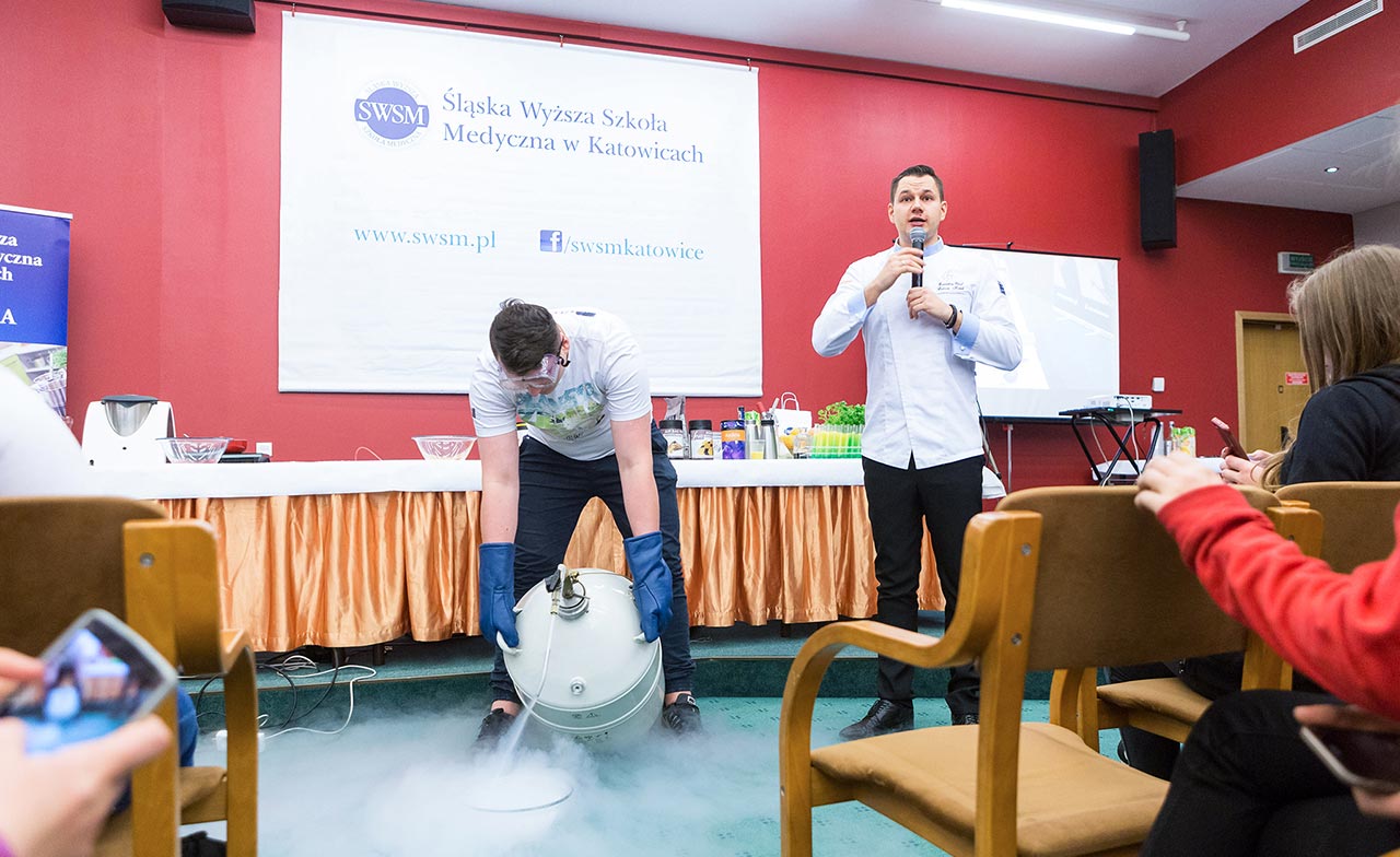 W dniach 14 i 15 listopada gościliśmy w naszych murach pana Łukasza Konika, który poprowadził mrożący krew w żyłach (i nie tylko w nich) pokaz kuchni molekularnej. Cykliczne spotkania z Panem Łukaszem cieszą się niesłabnącą popularnością i stanowią już stały punkt programu w ofercie SWSM. Wszystkim uczestnikom serdecznie dziękujemy za liczne przybycie, aktywność oraz wspaniałą atmosferę podczas spotkań w obywda dni.