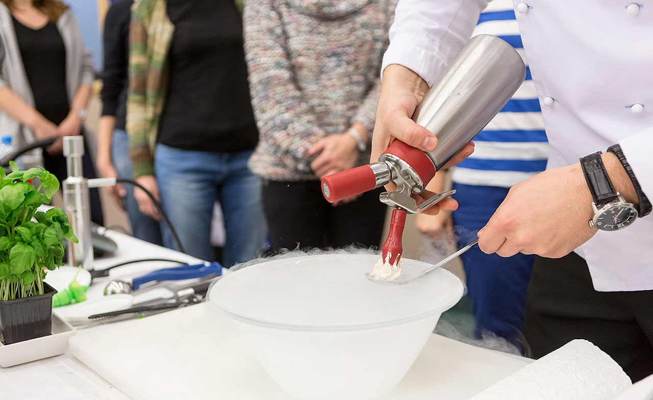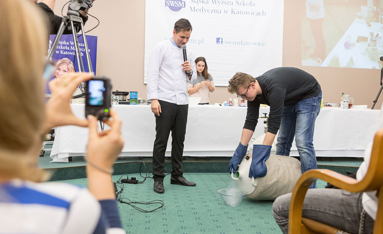 Prowadzącym pokaz będzie Łukasz Konik, kucharz „naukowiec”, członek elitarnej grupy Fundacji Klubu Szefów Kuchni, współpracownik Warszawskiego Instytutu Chemii i Fizyki PAN, poszukiwacz niezwykłych smaków.