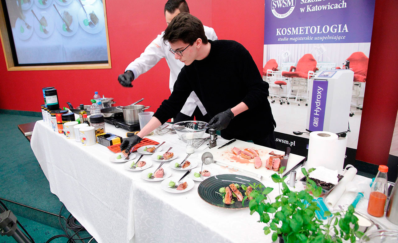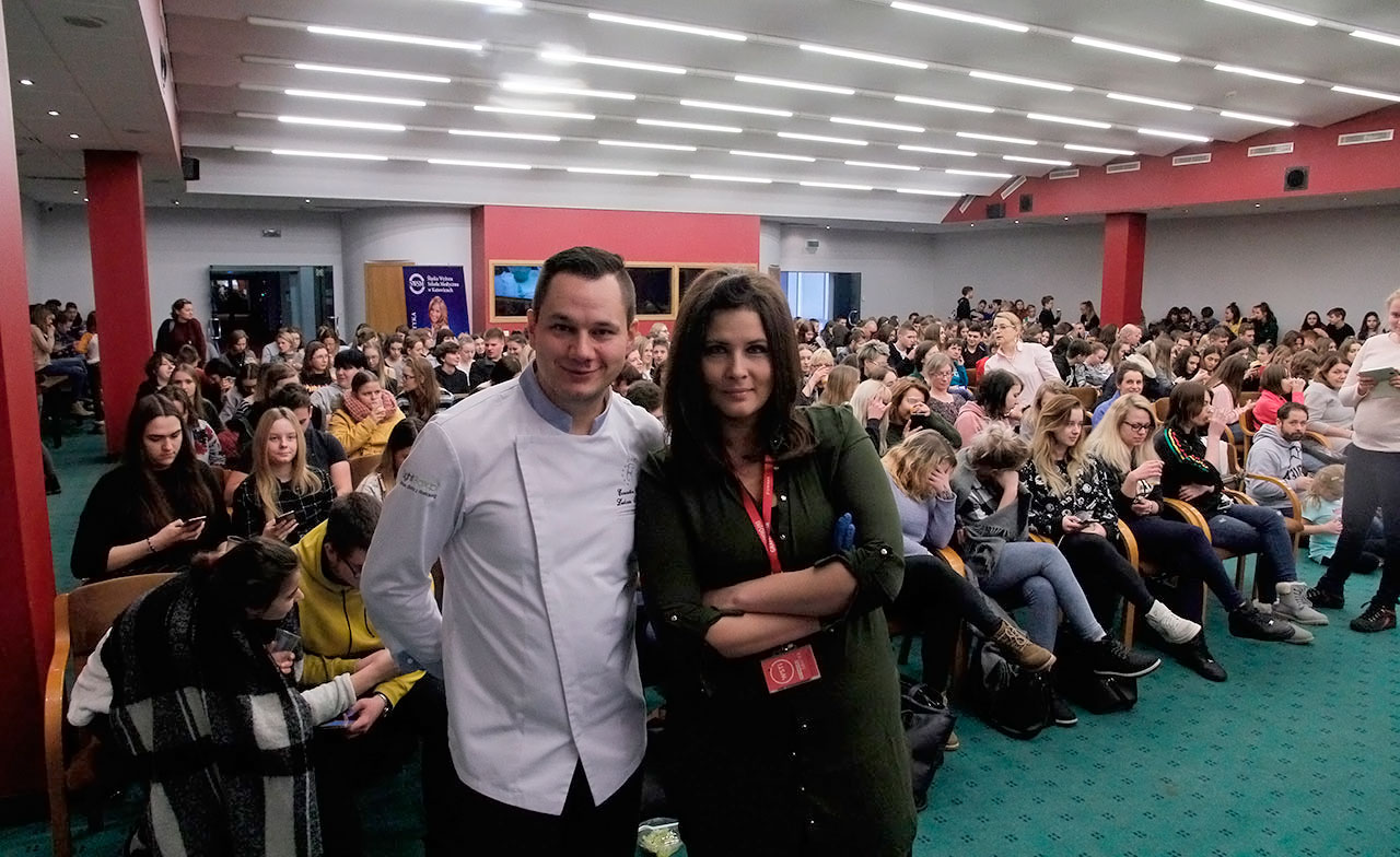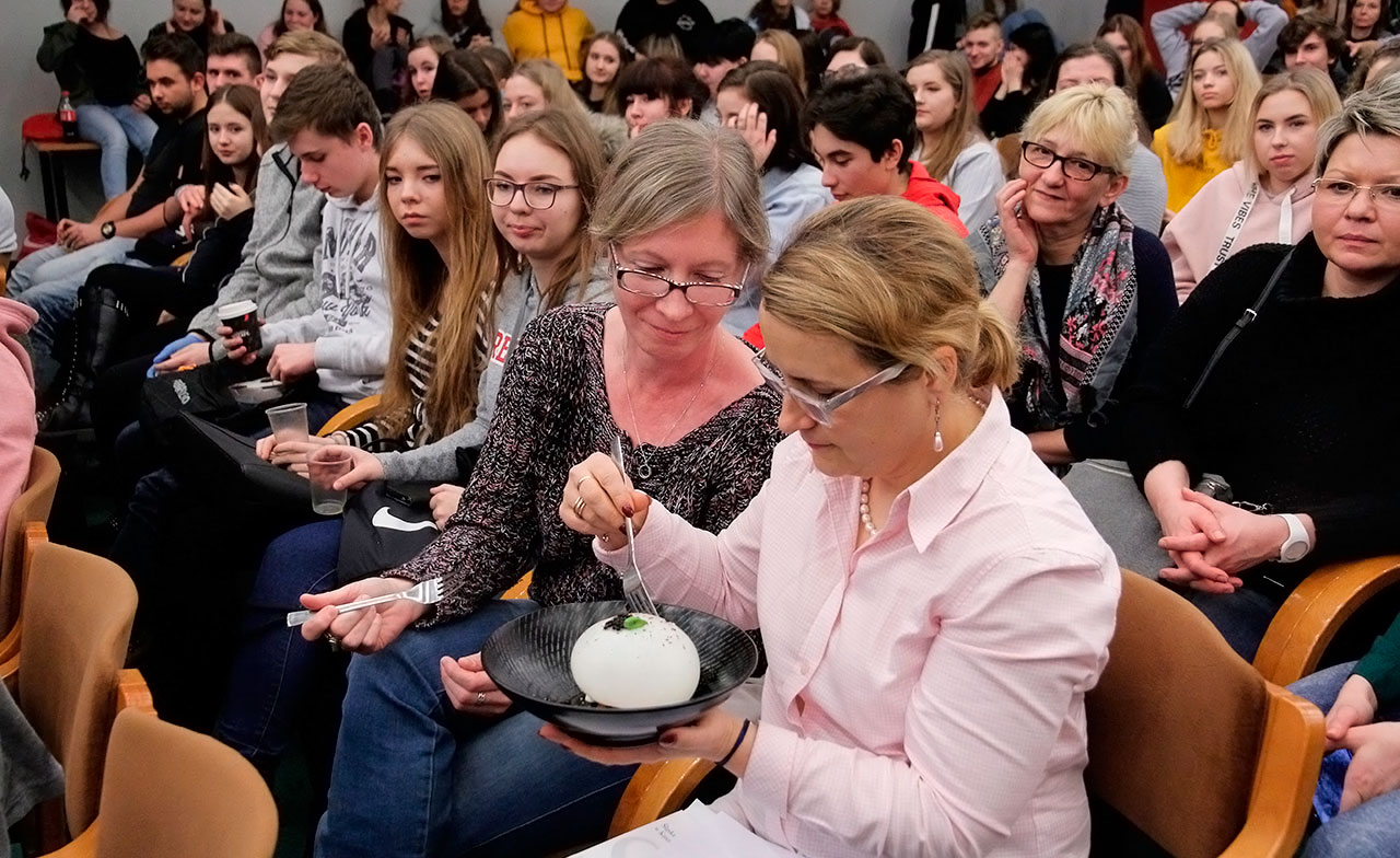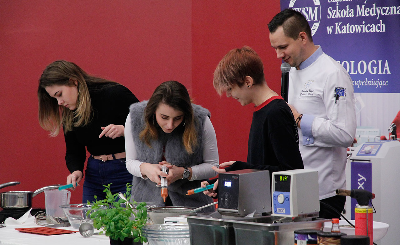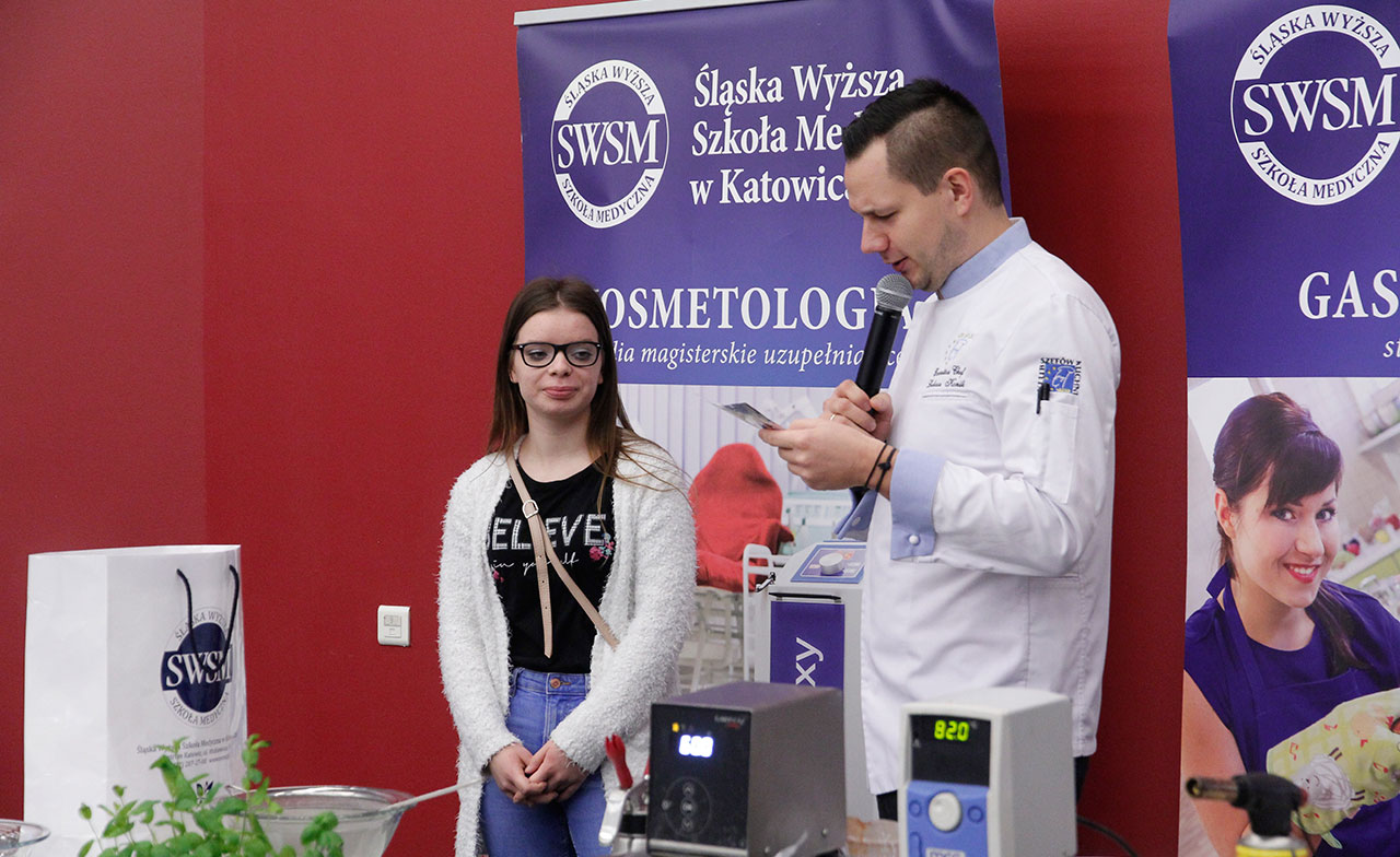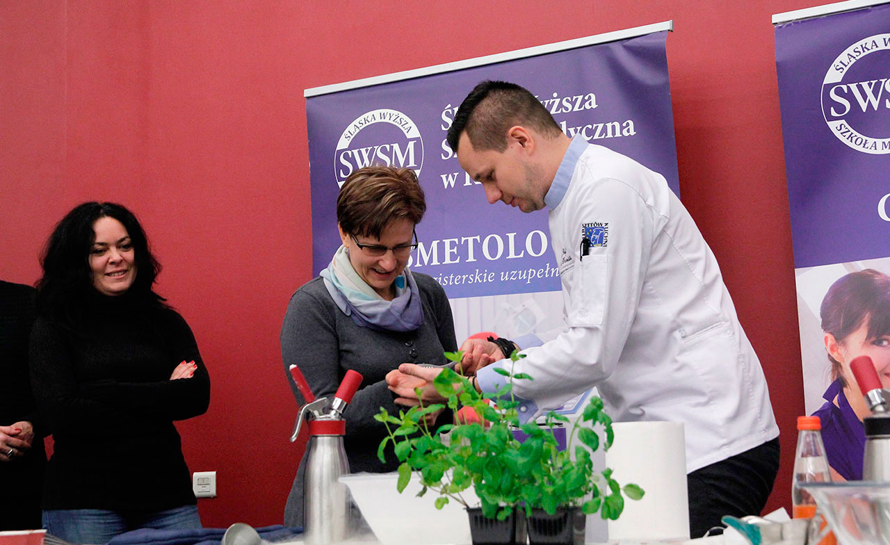 W dniach 9 i 10 stycznia 2019 gościliśmy w naszych murach pana Łukasza Konika, który poprowadził mrożący krew w żyłach (i nie tylko w nich) pokaz kuchni molekularnej. Cykliczne spotkania z panem Łukaszem cieszą się niesłabnącą popularnością i stanowią już stały punkt programu w ofercie SWSM.
