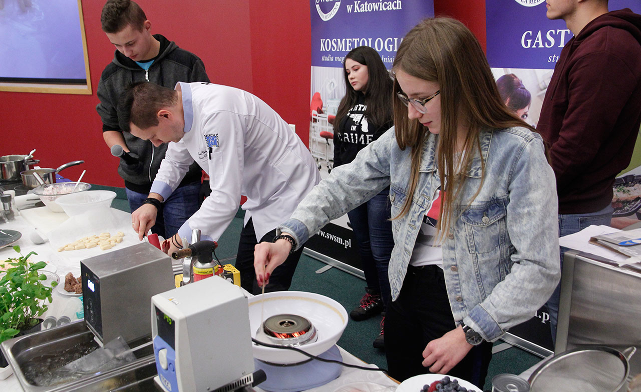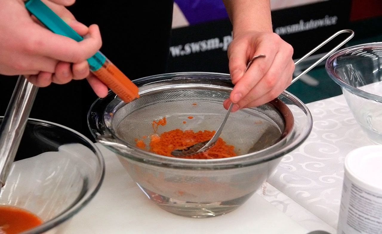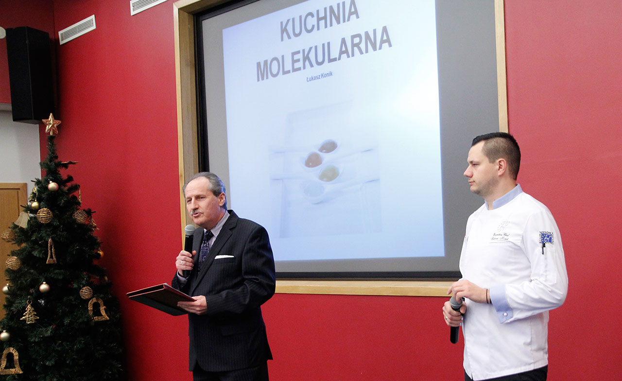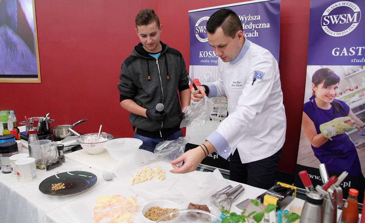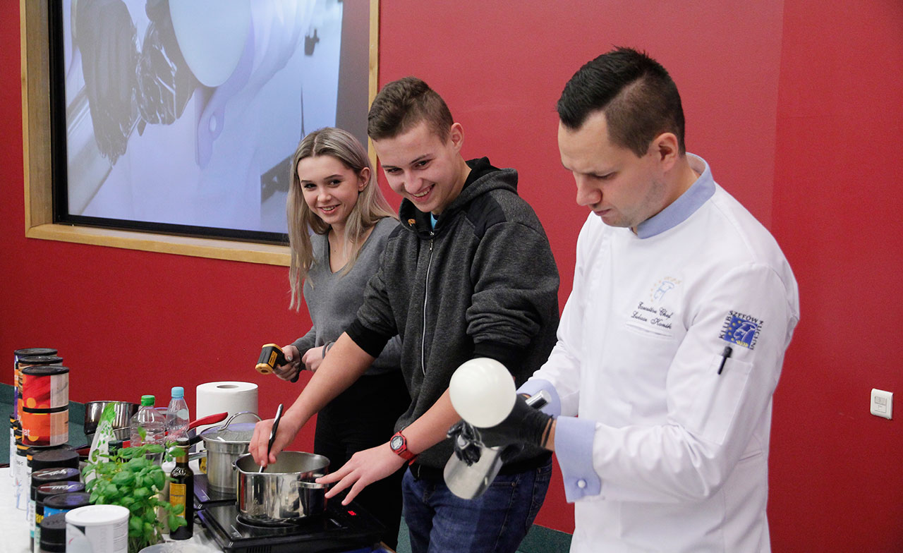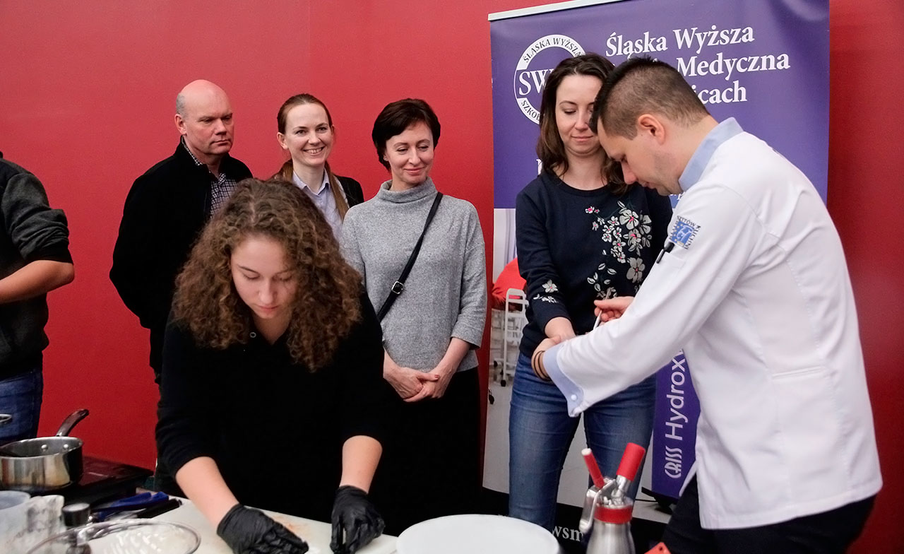 W dniach 9 i 10 stycznia 2019 gościliśmy w naszych murach pana Łukasza Konika, który poprowadził mrożący krew w żyłach (i nie tylko w nich) pokaz kuchni molekularnej. Cykliczne spotkania z panem Łukaszem cieszą się niesłabnącą popularnością i stanowią już stały punkt programu w ofercie SWSM.