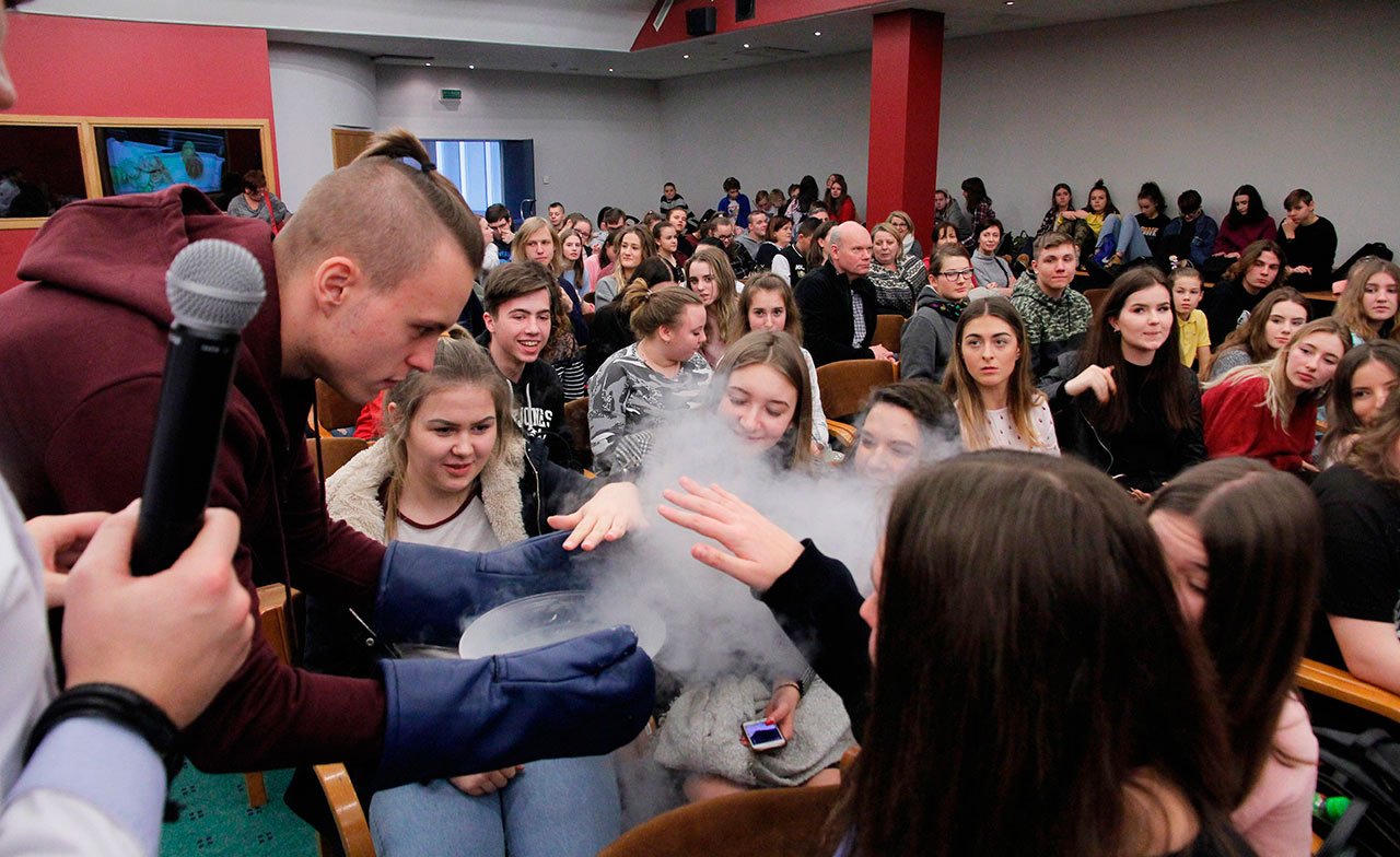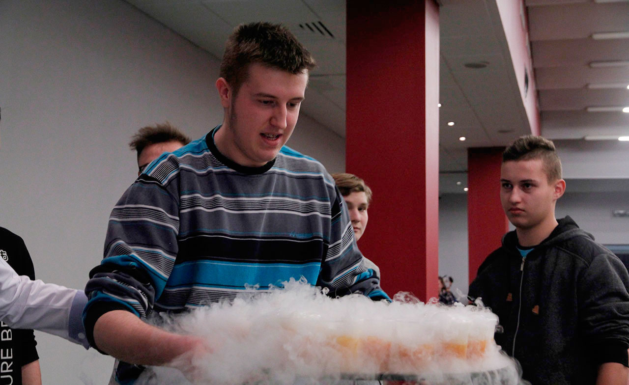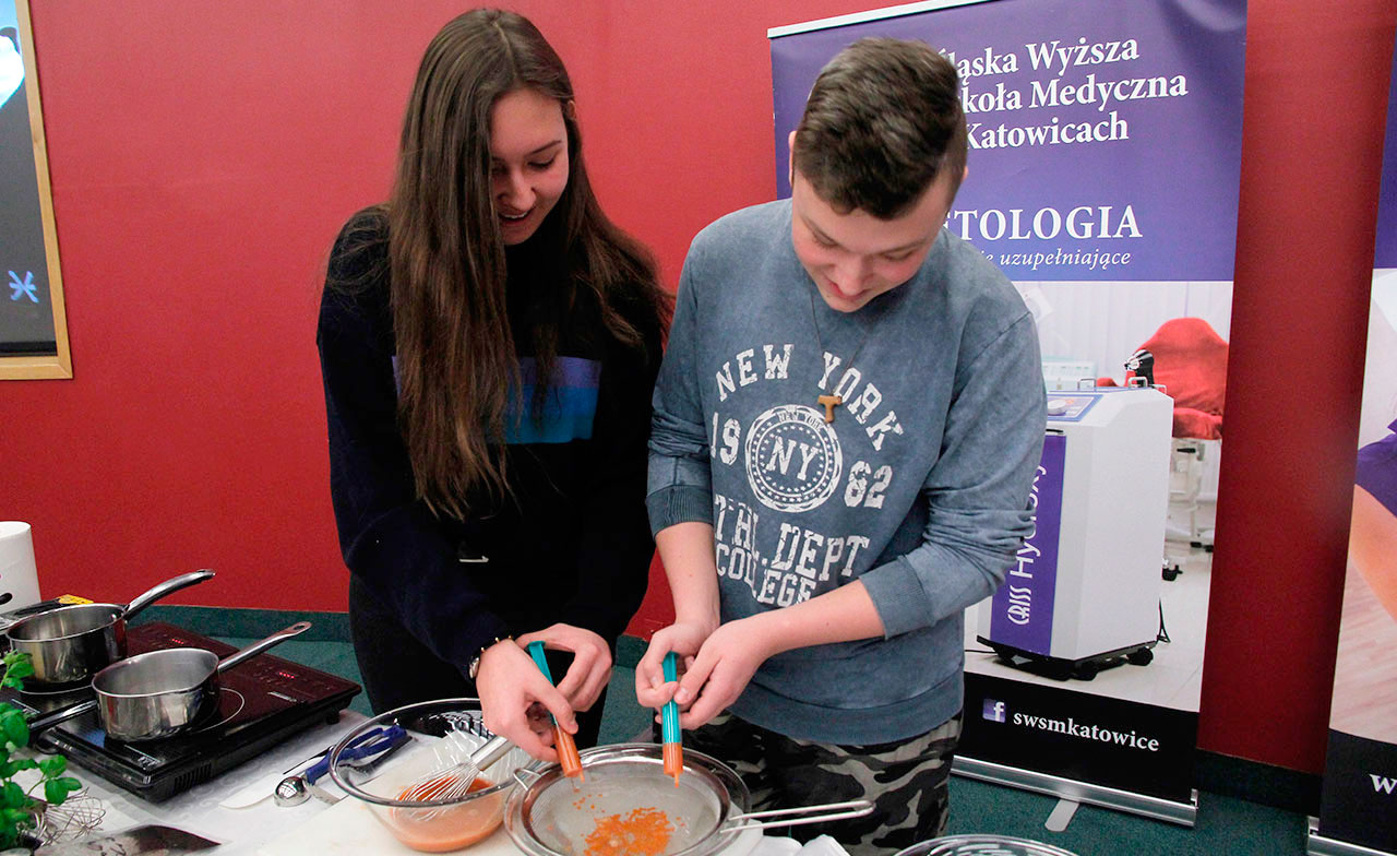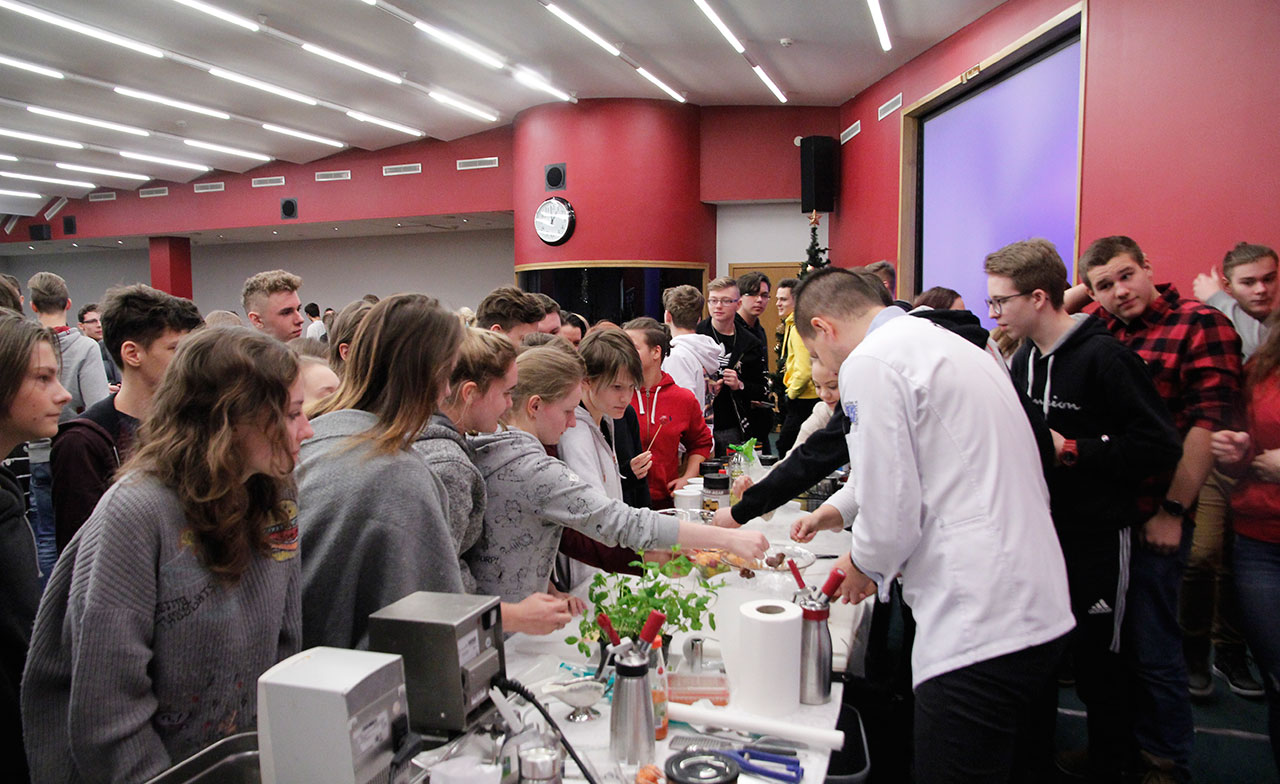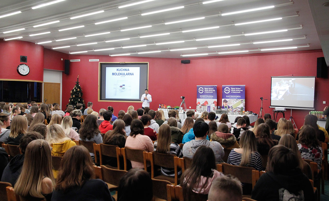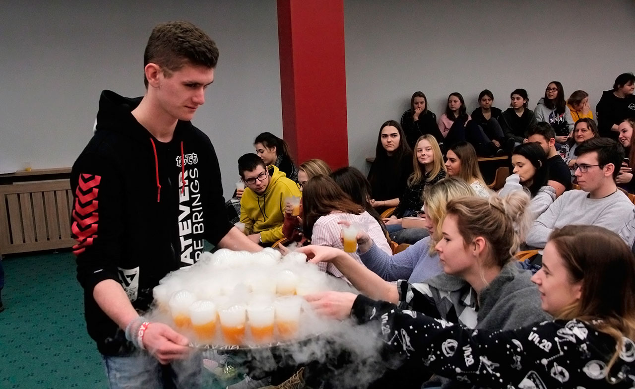 W dniach 9 i 10 stycznia 2019 gościliśmy w naszych murach pana Łukasza Konika, który poprowadził mrożący krew w żyłach (i nie tylko w nich) pokaz kuchni molekularnej. Cykliczne spotkania z panem Łukaszem cieszą się niesłabnącą popularnością i stanowią już stały punkt programu w ofercie SWSM.