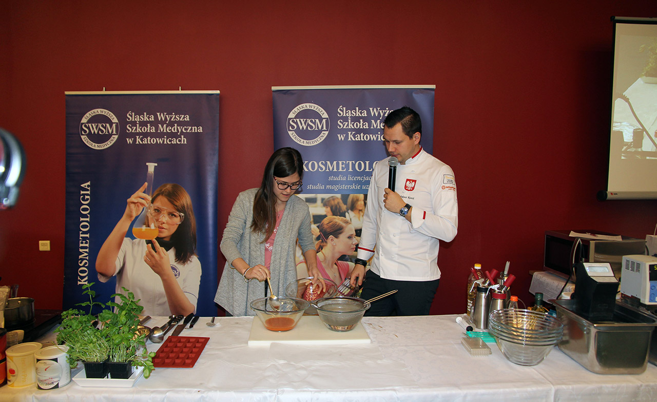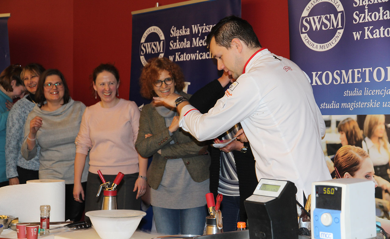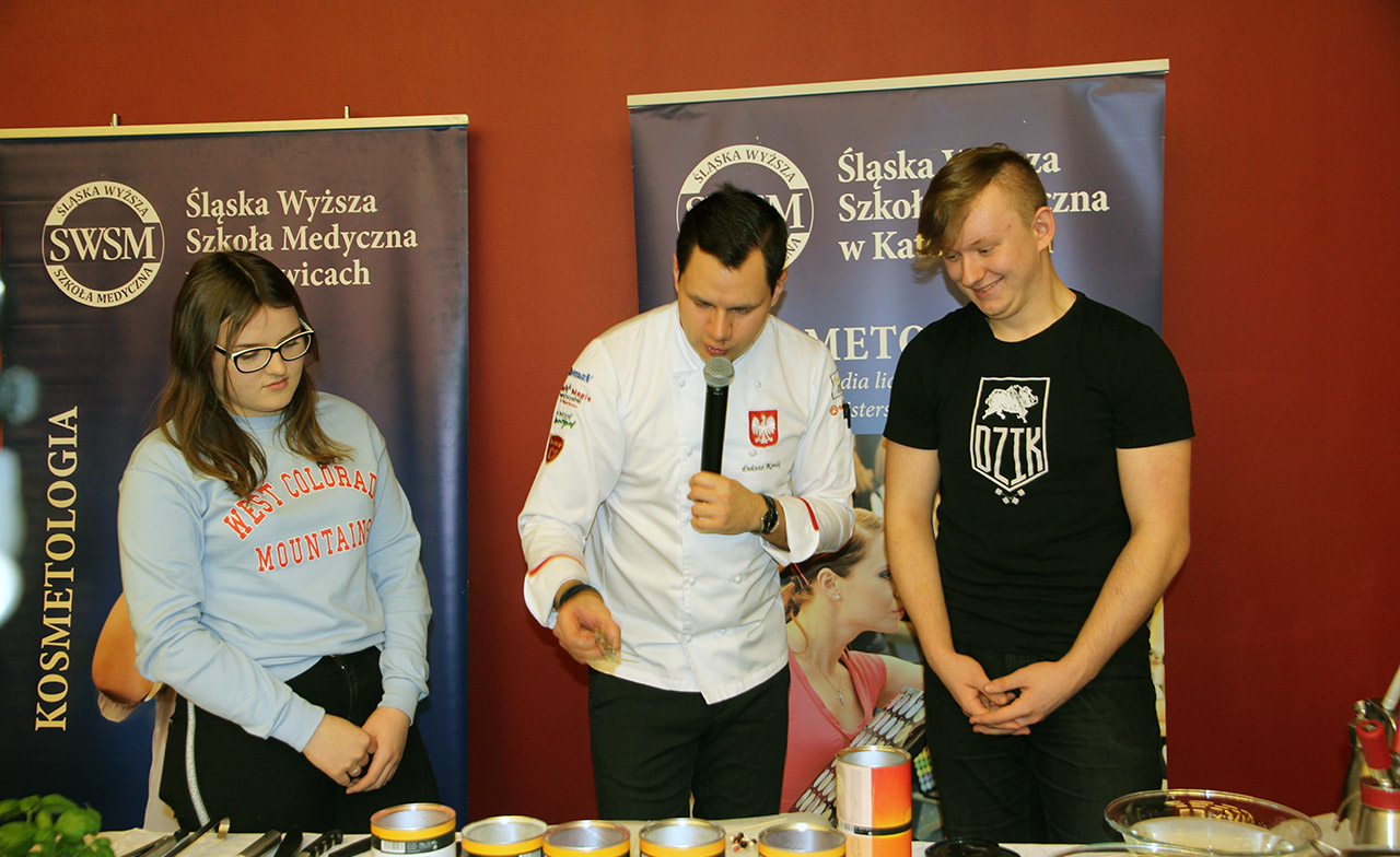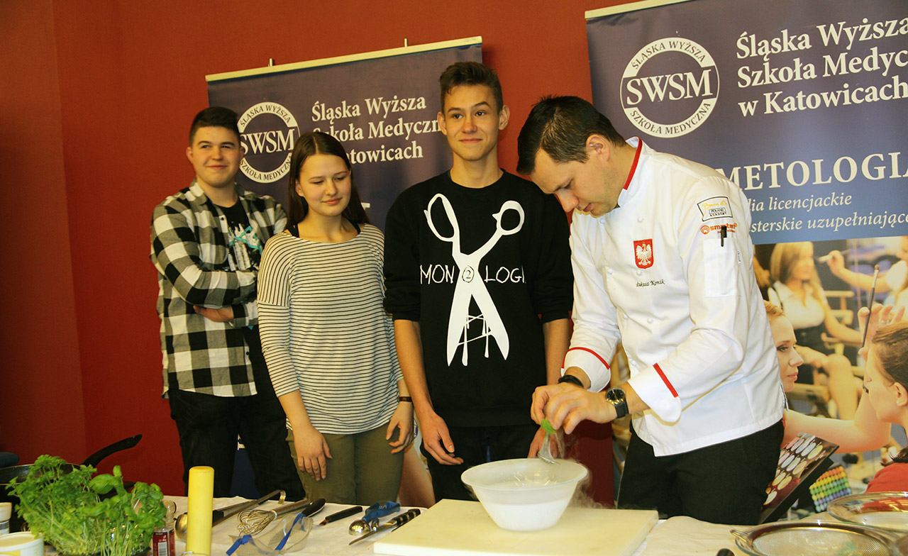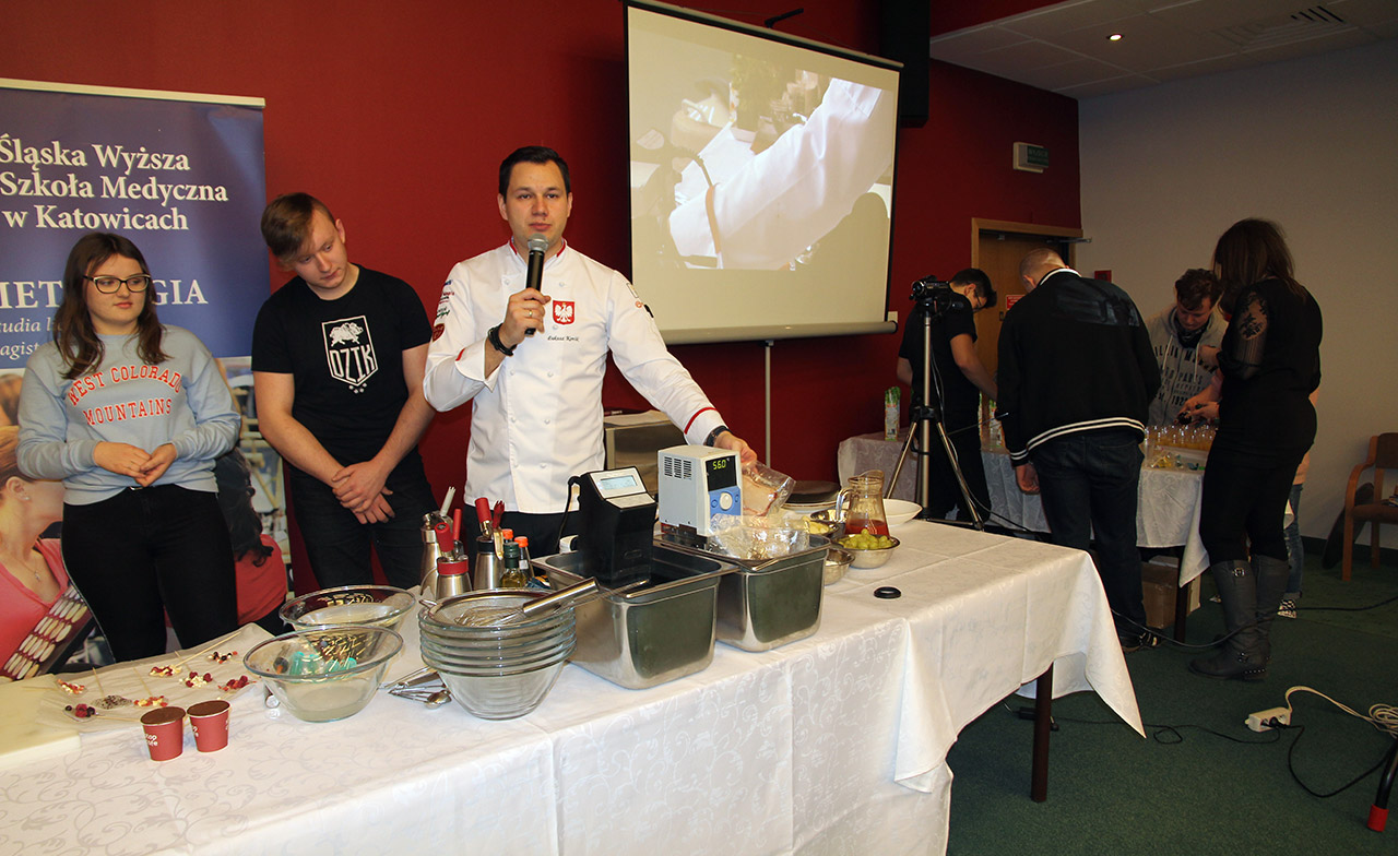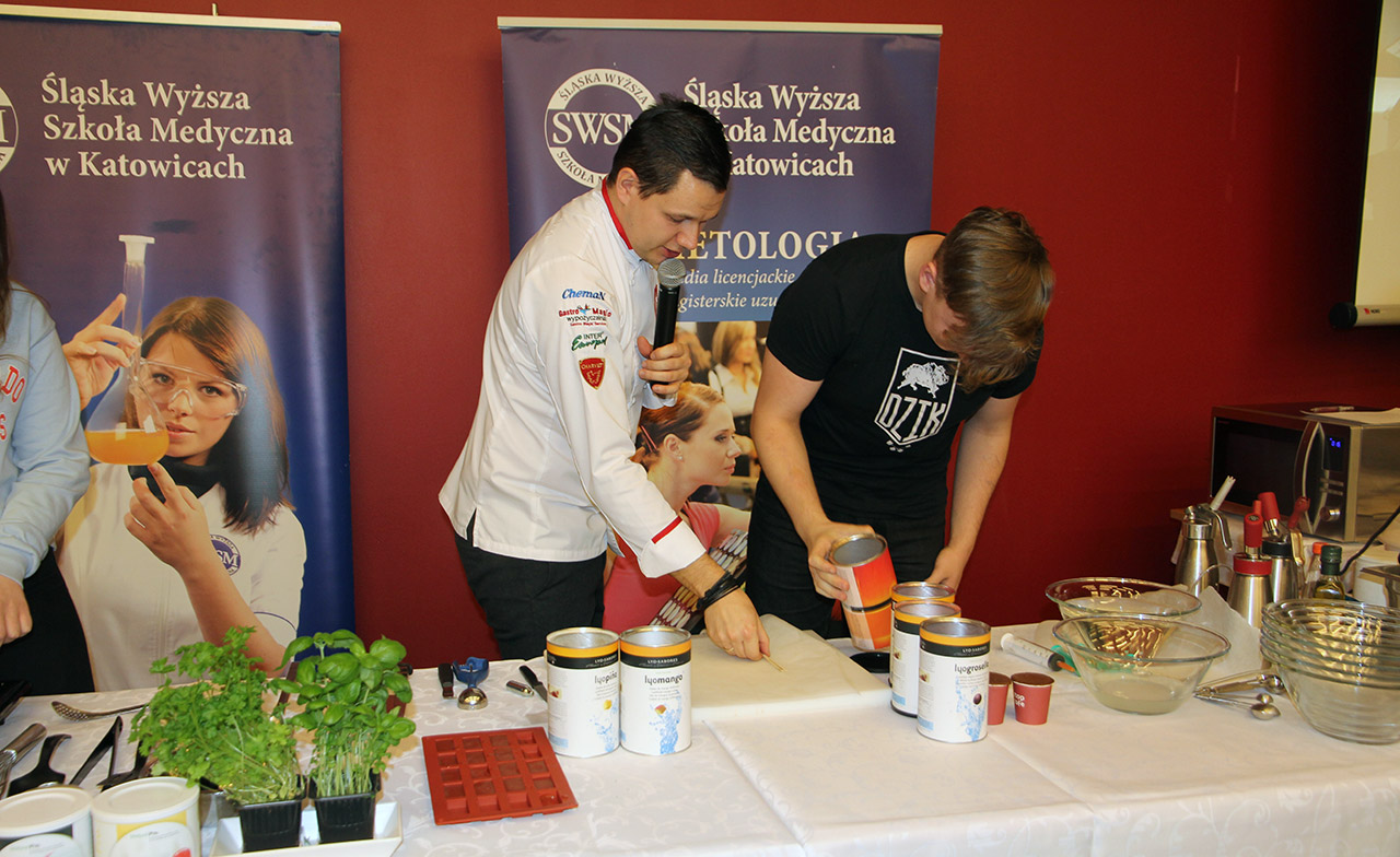 Za nami dwa pasjonujące dni spotkań kulinarnych z mistrzem Łukaszem Konikiem i jego konikiem, czyli kuchnią molekularną. Dziękujemy za tłumne przybycie oraz aktywny udział w naszym pokazie. To była wyjątkowo aktywna i zdolna publiczność!!! Mamy nadzieję, że udało nam się zafascynować Was zagadnieniami ze świata gastronomii i dietetyki jakich wcześniej nie doświadczyliście w swoim życiu. Chcecie więcej? Zapraszamy na studia do Śląskiej Wyższej Szkoły Medycznej w Katowicach.