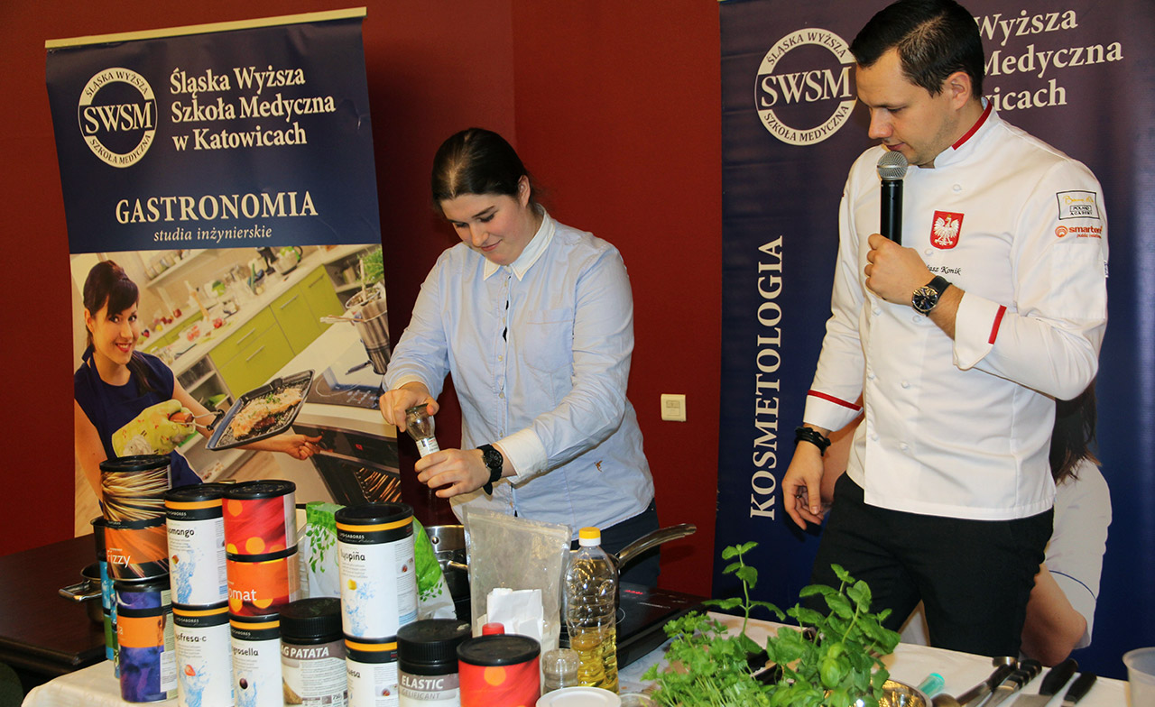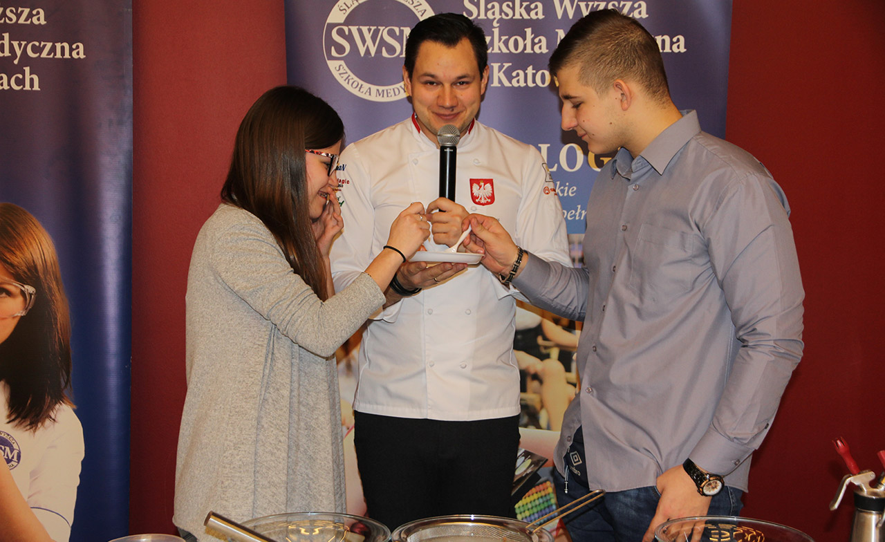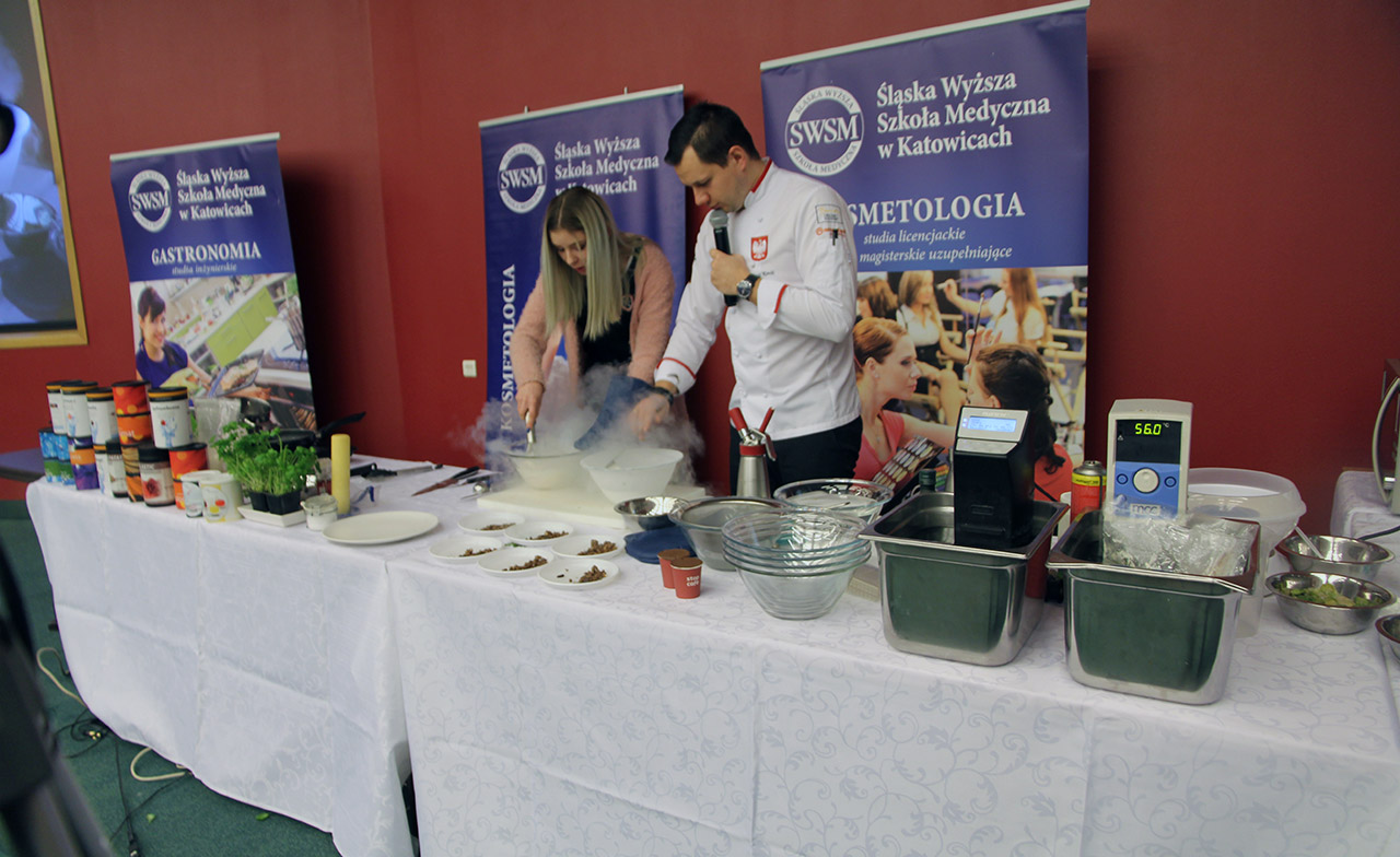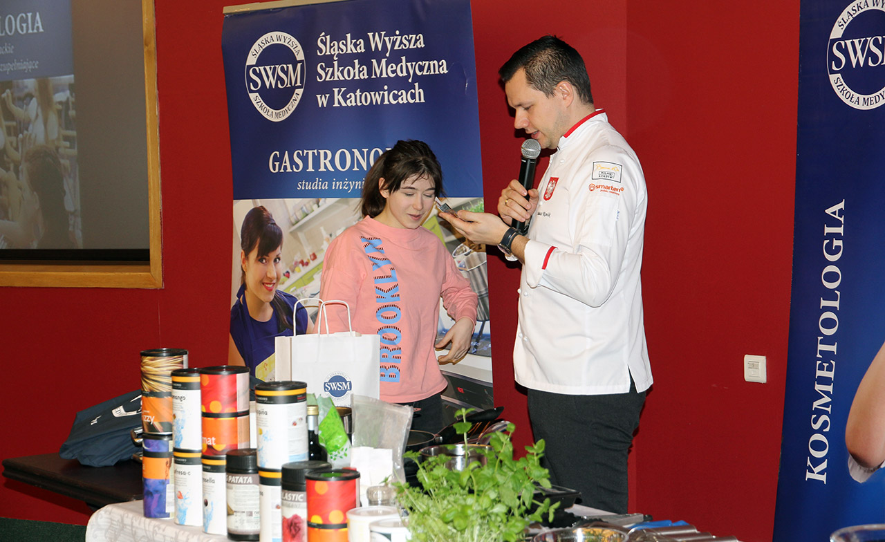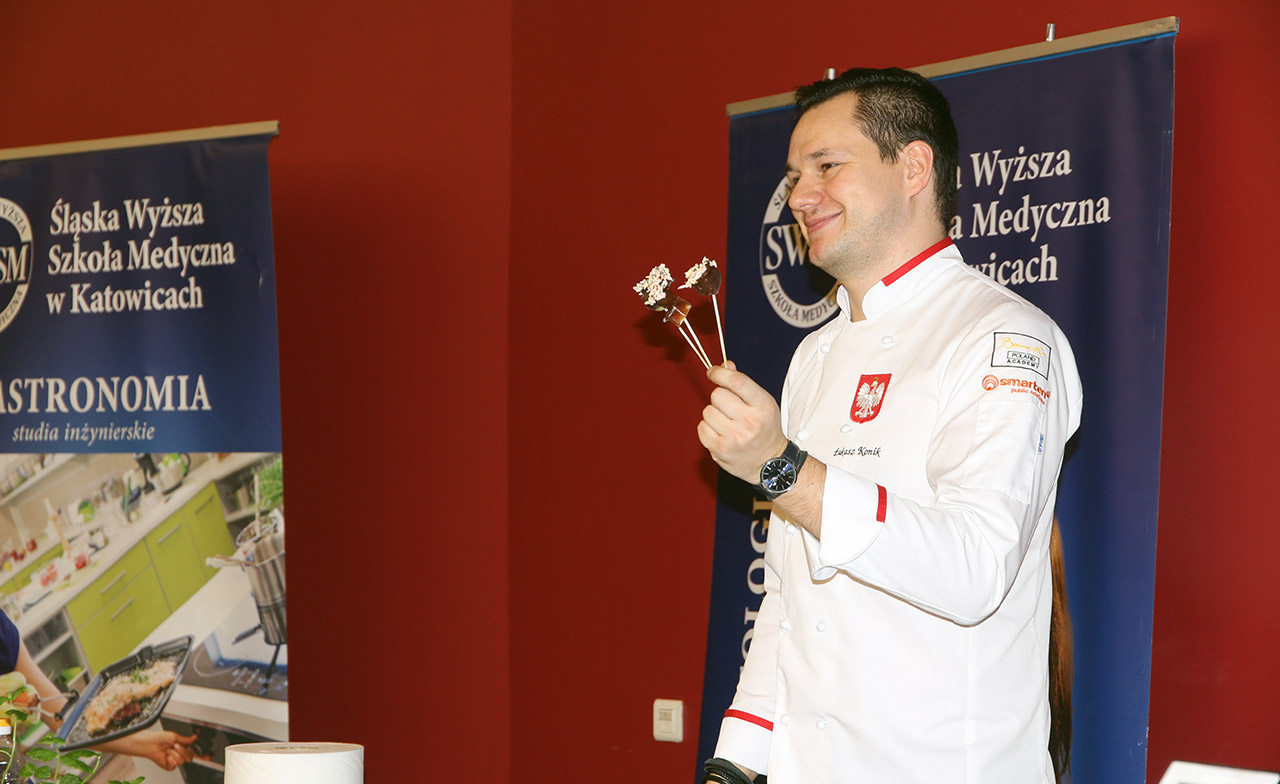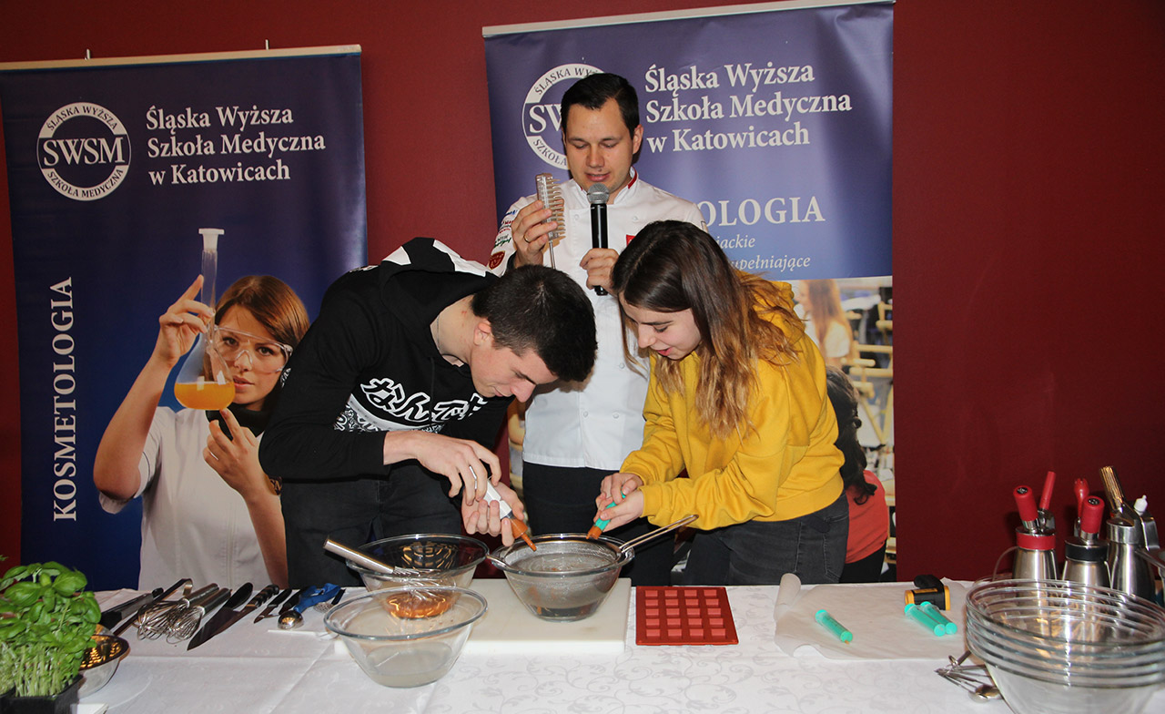 Za nami dwa pasjonujące dni spotkań kulinarnych z mistrzem Łukaszem Konikiem i jego konikiem, czyli kuchnią molekularną. Dziękujemy za tłumne przybycie oraz aktywny udział w naszym pokazie. To była wyjątkowo aktywna i zdolna publiczność!!! Mamy nadzieję, że udało nam się zafascynować Was zagadnieniami ze świata gastronomii i dietetyki jakich wcześniej nie doświadczyliście w swoim życiu. Chcecie więcej? Zapraszamy na studia do Śląskiej Wyższej Szkoły Medycznej w Katowicach.