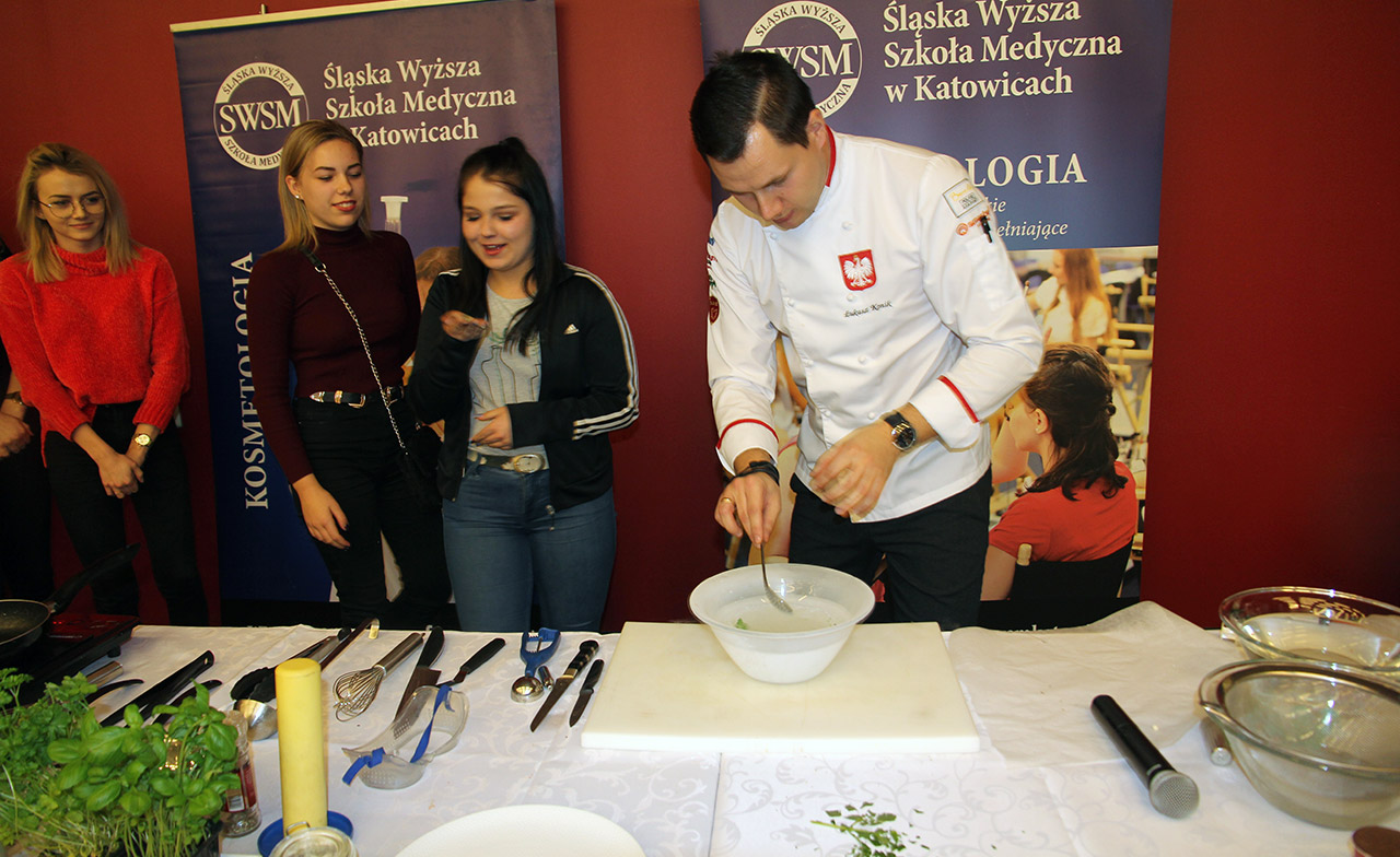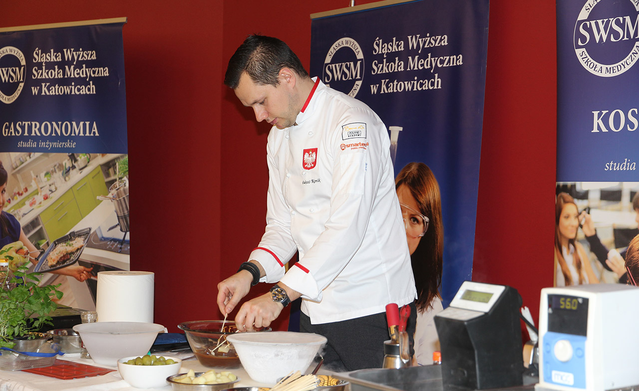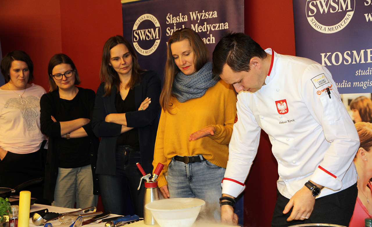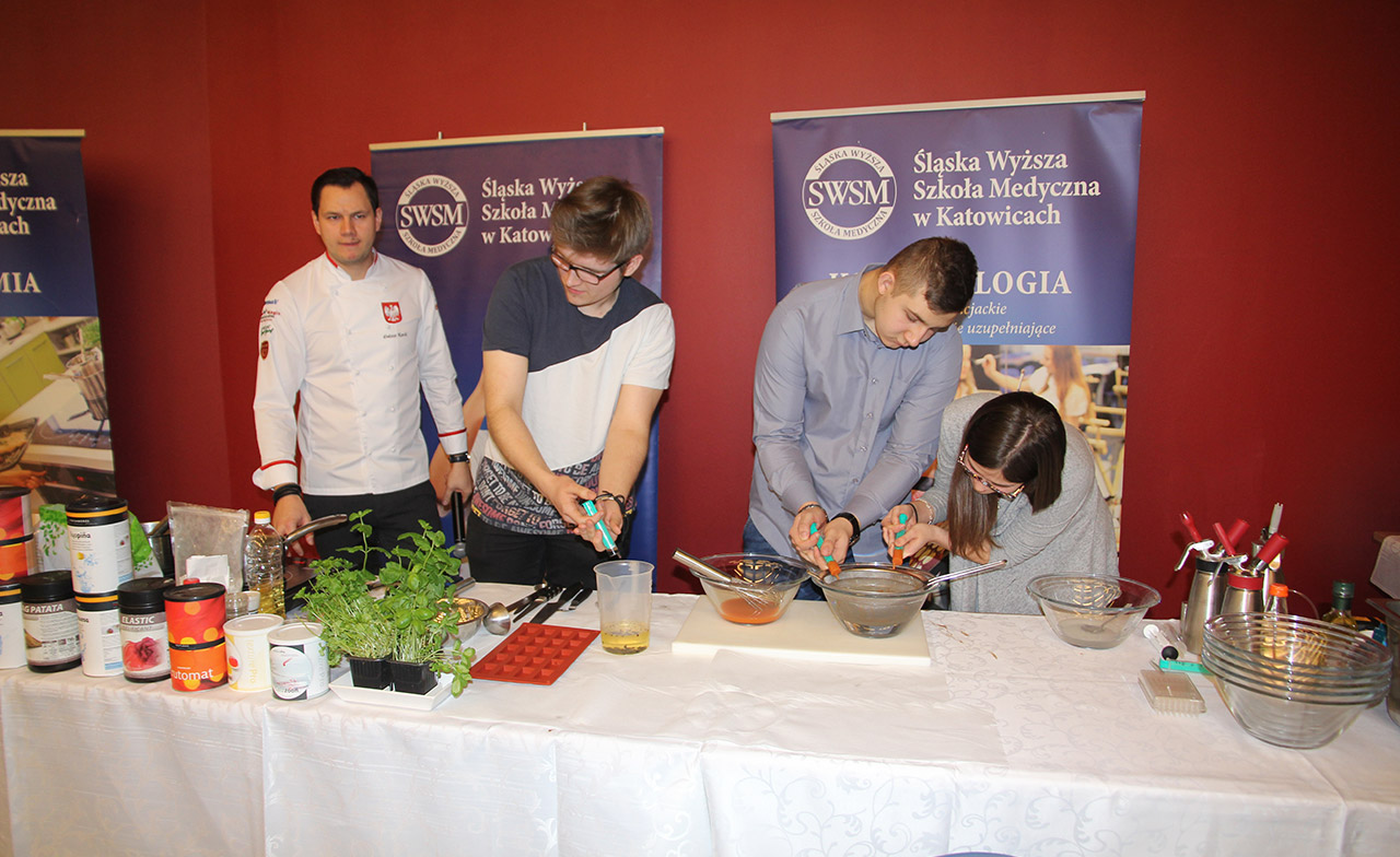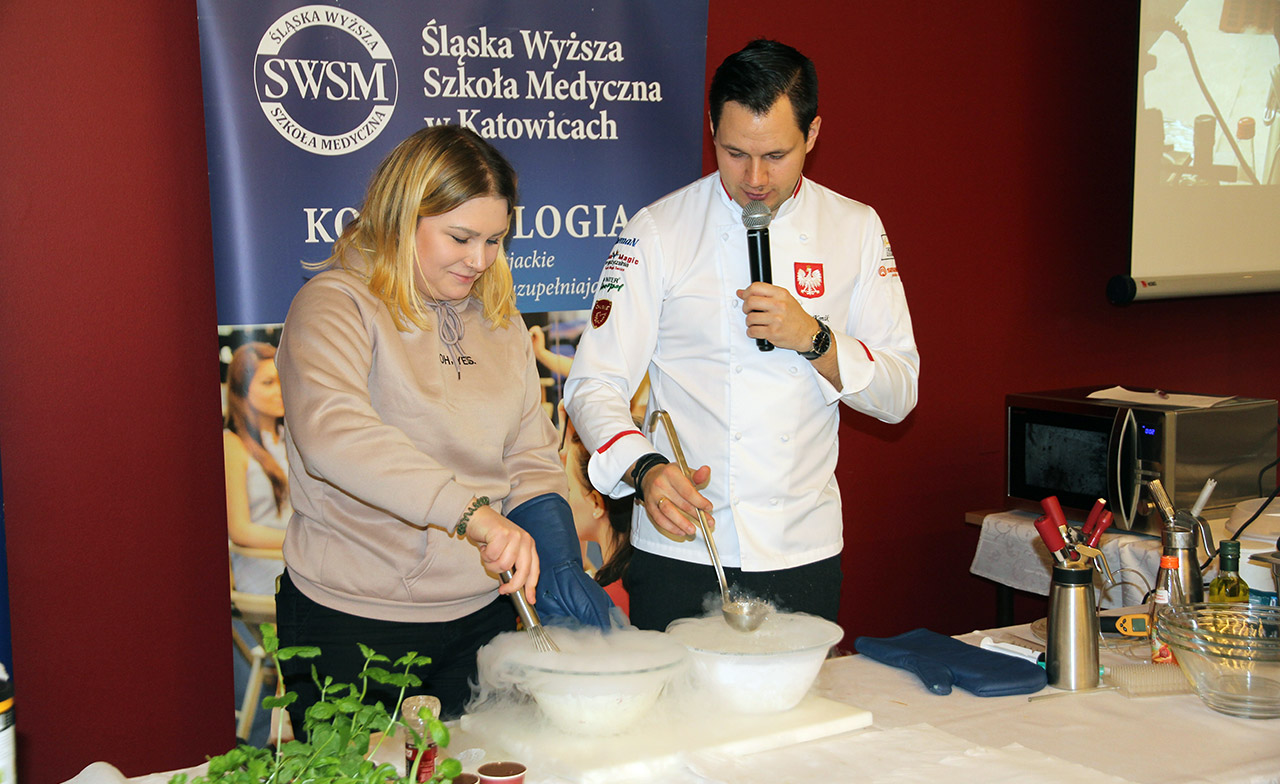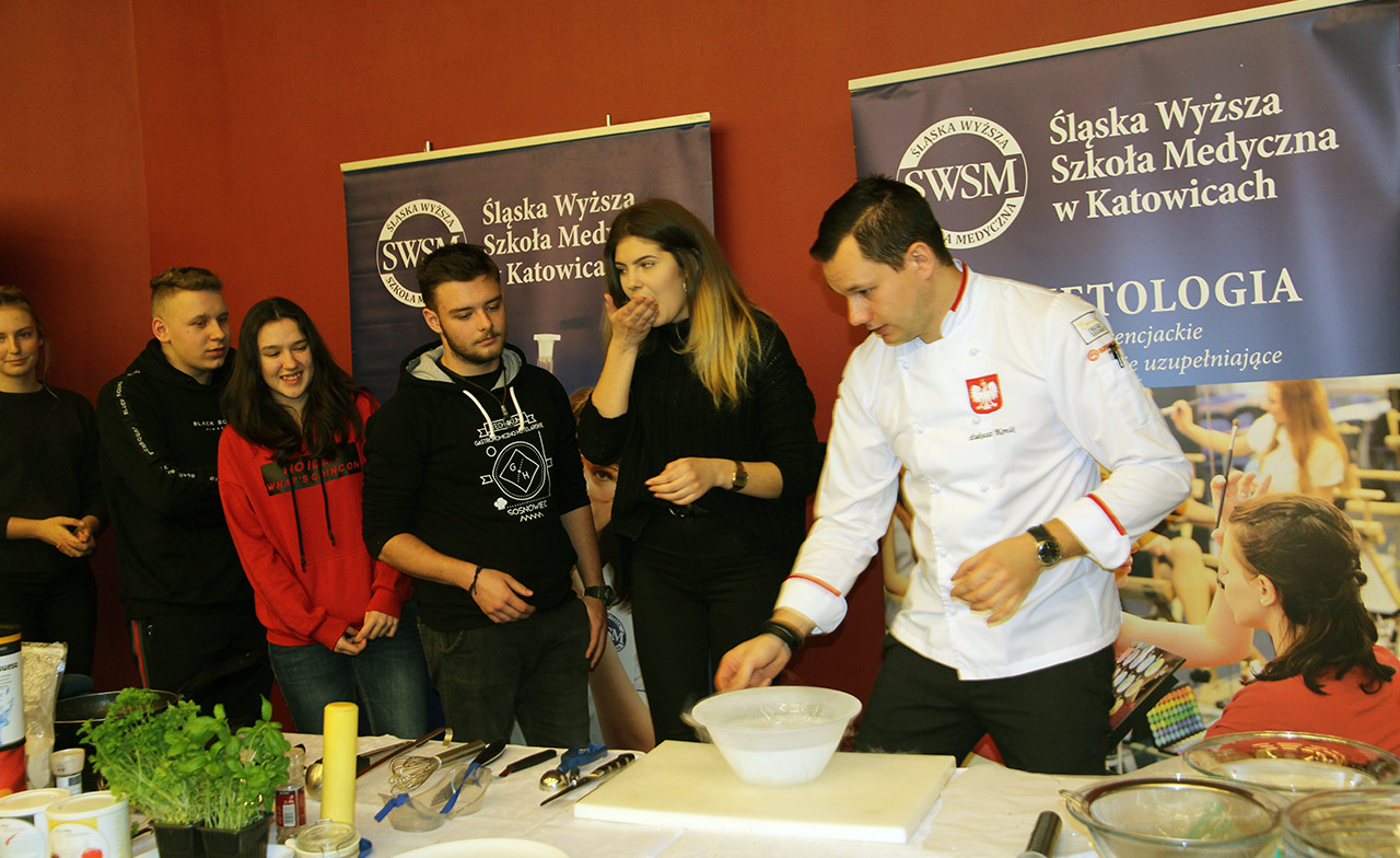 Za nami dwa pasjonujące dni spotkań kulinarnych z mistrzem Łukaszem Konikiem i jego konikiem, czyli kuchnią molekularną. Dziękujemy za tłumne przybycie oraz aktywny udział w naszym pokazie. To była wyjątkowo aktywna i zdolna publiczność!!! Mamy nadzieję, że udało nam się zafascynować Was zagadnieniami ze świata gastronomii i dietetyki jakich wcześniej nie doświadczyliście w swoim życiu. Chcecie więcej? Zapraszamy na studia do Śląskiej Wyższej Szkoły Medycznej w Katowicach.