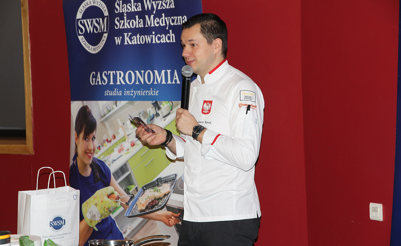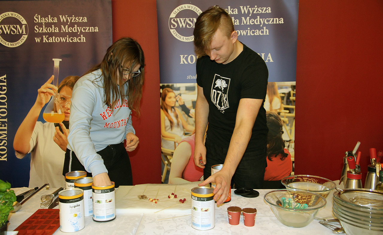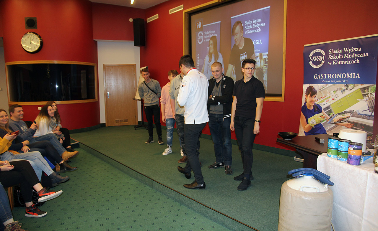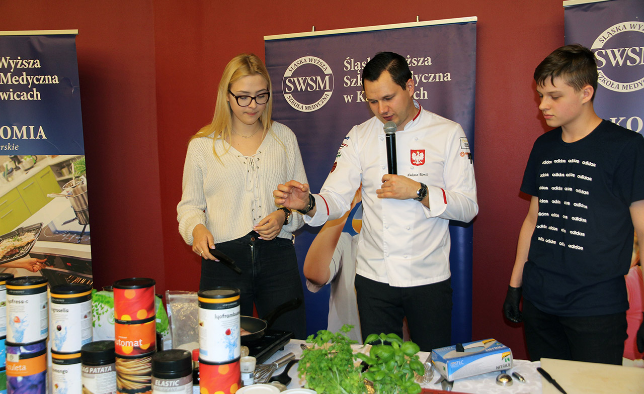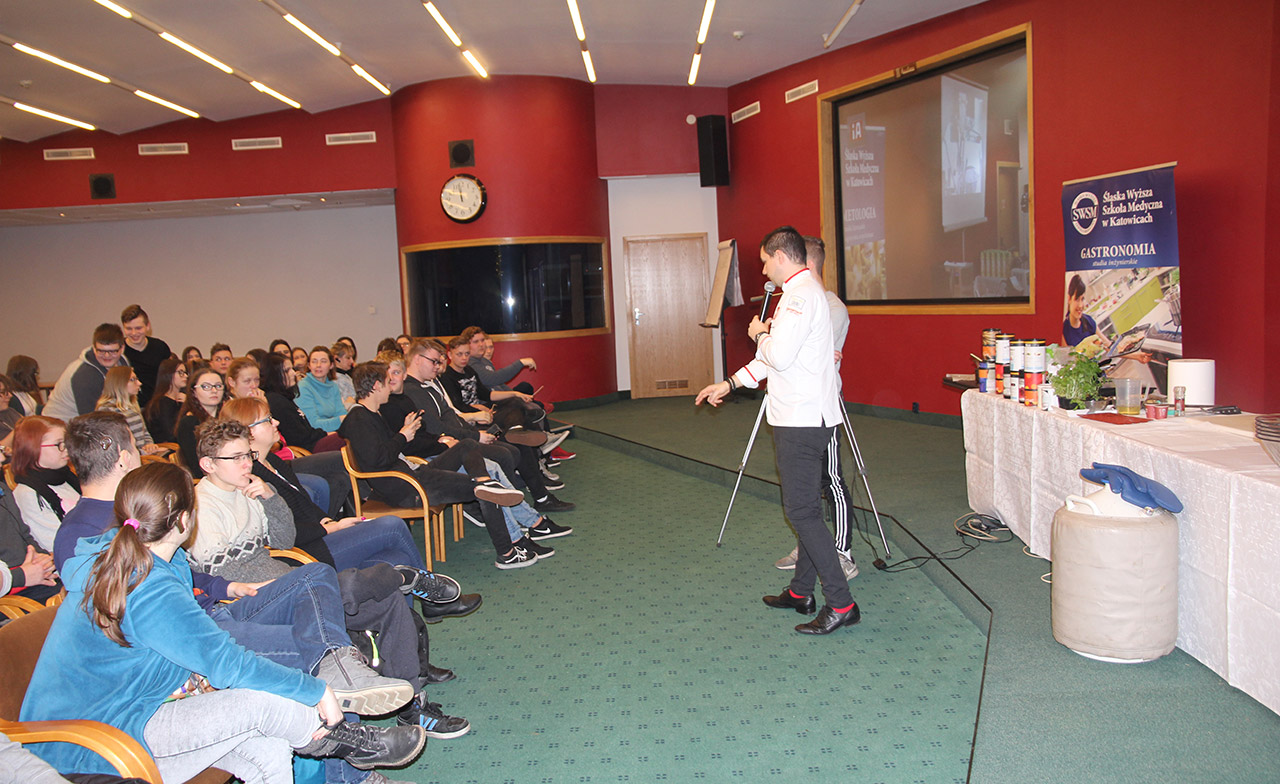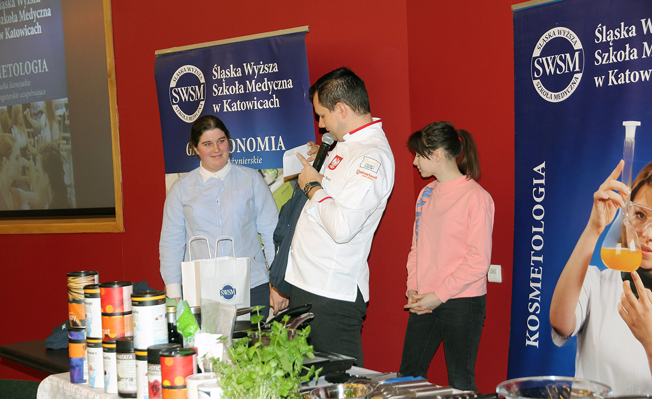 Za nami dwa pasjonujące dni spotkań kulinarnych z mistrzem Łukaszem Konikiem i jego konikiem, czyli kuchnią molekularną. Dziękujemy za tłumne przybycie oraz aktywny udział w naszym pokazie. To była wyjątkowo aktywna i zdolna publiczność!!! Mamy nadzieję, że udało nam się zafascynować Was zagadnieniami ze świata gastronomii i dietetyki jakich wcześniej nie doświadczyliście w swoim życiu. Chcecie więcej? Zapraszamy na studia do Śląskiej Wyższej Szkoły Medycznej w Katowicach.