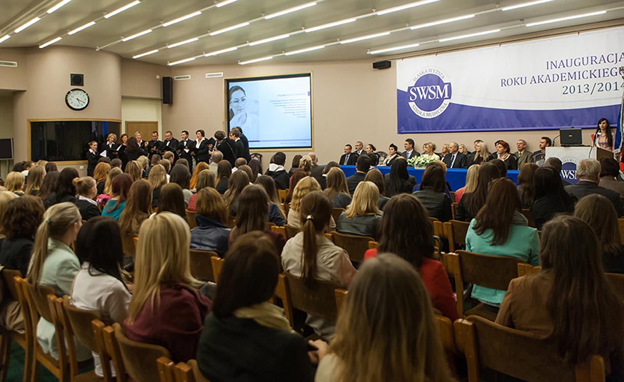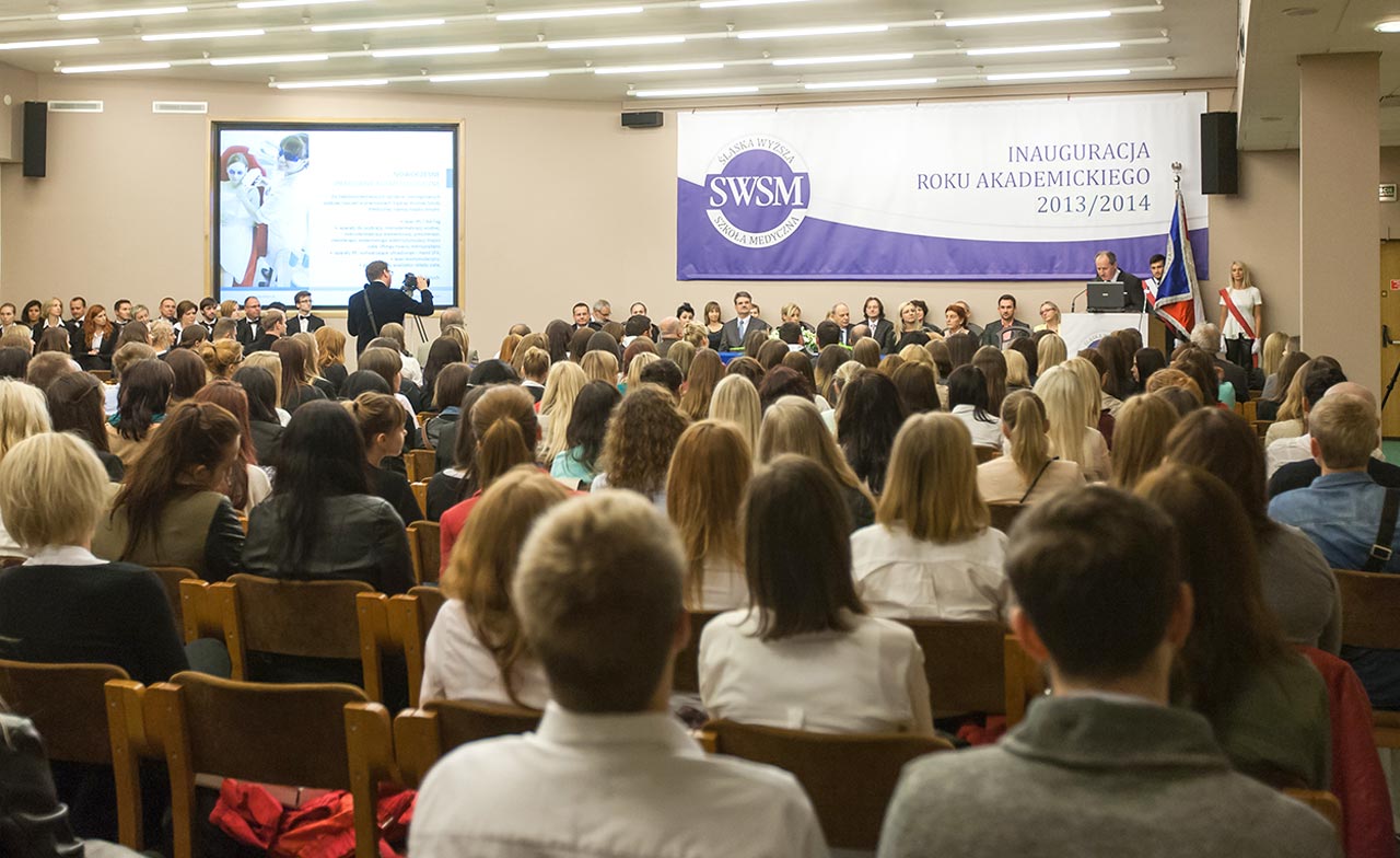27 września 2013 roku Rektor i Senat Śląskiej Wyższej Szkoły Medycznej w Katowicach uroczyście zainaugurowali rok akademicki 2013/14. W siedzibie SWSM wraz z członkami społeczności akademickiej wysłuchaliśmy "Gaudeamus igitur" odśpiewanego przez chór Santarello, słów JM Rektora SWSM prof. dr hab. n.med. Jacka Starzewskiego skierowanych do żaków, odczytu Prorektora ds. Studenckich SWSM Marka Maryniaka, a także krótkiej odezwy dominikanina o. Michała Śliża OP i wykładu inauguracyjnego pt. "Od młodości do starości - rzecz o starzeniu skóry człowieka. Czy istnieje eliksir młodości?" wygłoszonego przez prof. SWSM dr hab Magdalenę Rost-Roszkowską. Najbardziej oczekiwanym momentem spotkania stała się chwila immatrykulacji.