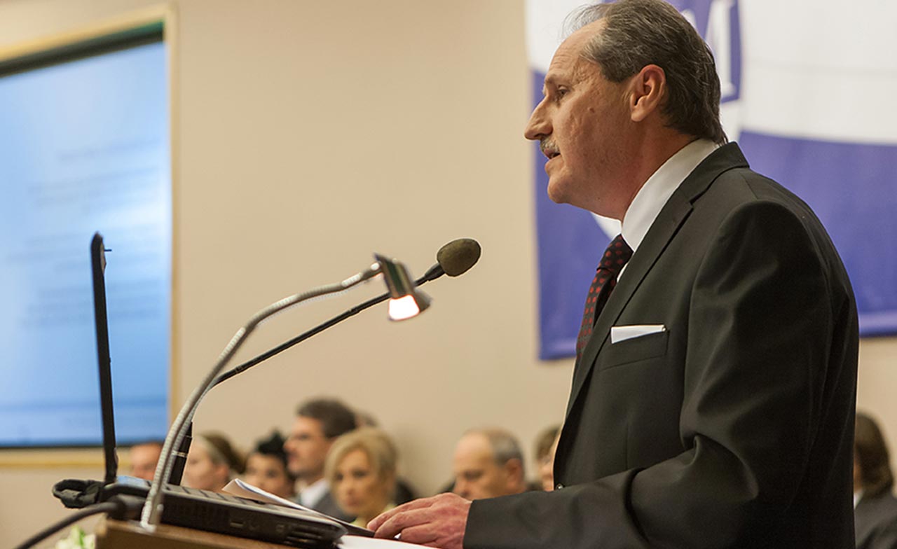 Następnie głos zabrał o. Michał Śliż OP, który życzył studentom wytrwałości w osiągnięciu celu, jakim stało się dla nich uzyskanie dyplomu ukończenia studiów licencjackich. Po wystapieniu dominikanina następił moment, na który wszyscy czekali – odbyła się uroczysta immatrykulacja, podczas której studenci pierwszego roku powtarzali za Prorektorem ds. Studenckich słowa ślubowania: