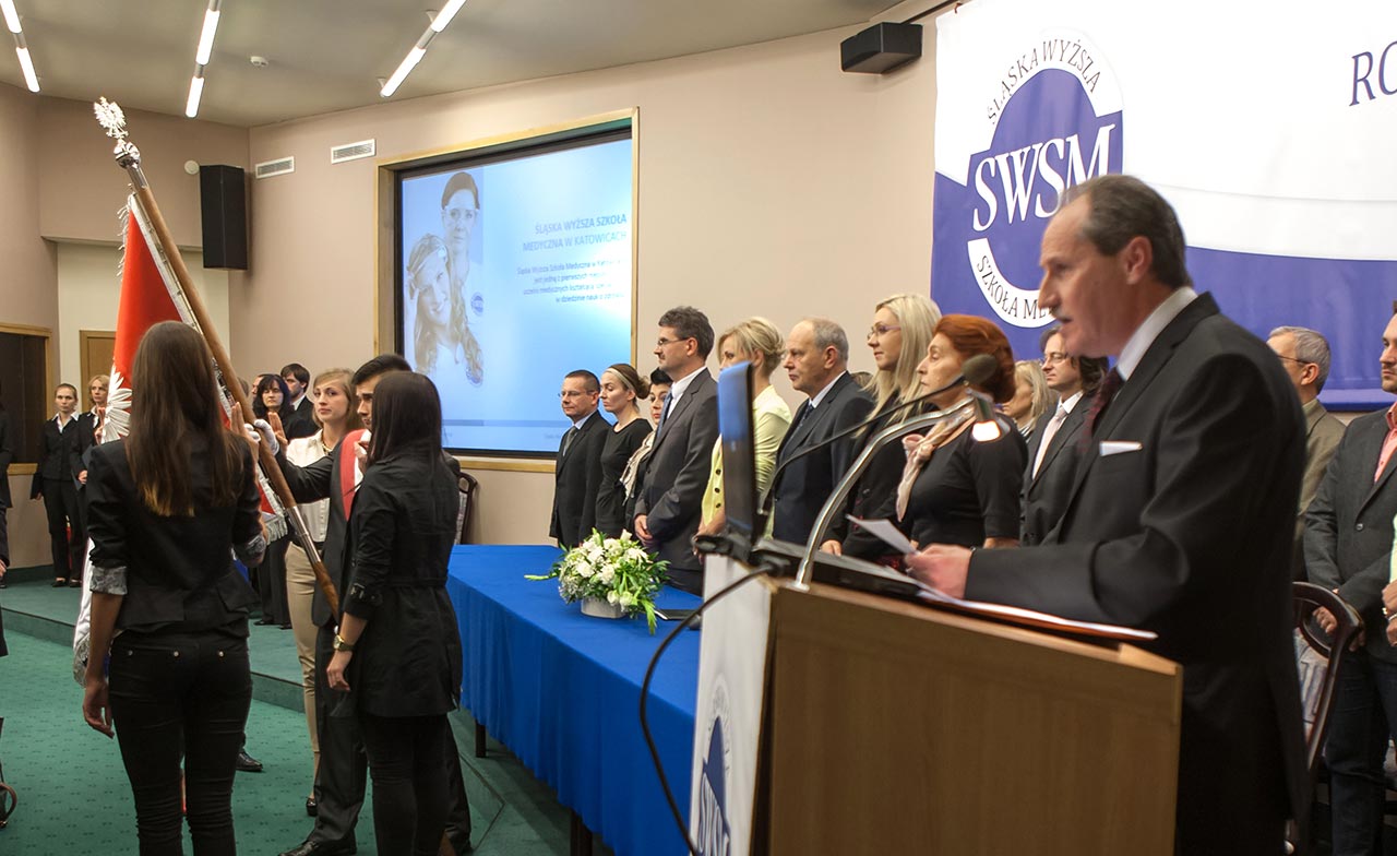 Uroczystość zgromadziła w siedzibie Śląskiej Wyższej Szkoły Medycznej w Katowicach nie tylko studentów pierwszego roku, czy przedstawicieli Samorządu Studenckiego, ale także założycieli i władze Uczelni. Nie zabrakło reprezentantów kadry akademickiej oraz licznie zgromadzonych gości.