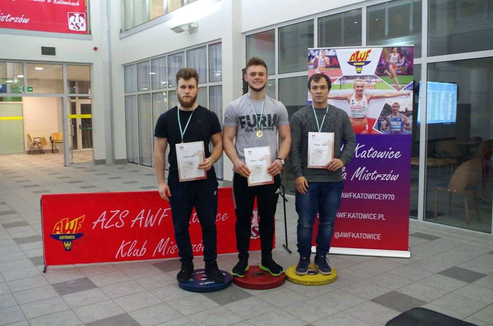 Miło nam poinformować, że studenci naszej uczelni Marcin Oleś oraz Rafał Barczyk zdobyli złote medale podczas Akademickich Mistrzosw Śląska w dyscyplinie Wyciskanie sztangi leżąc, każdy w swoich kategoriach wagowych. Zawody odbyły się 5 grudnia 2018 w Katowicach.