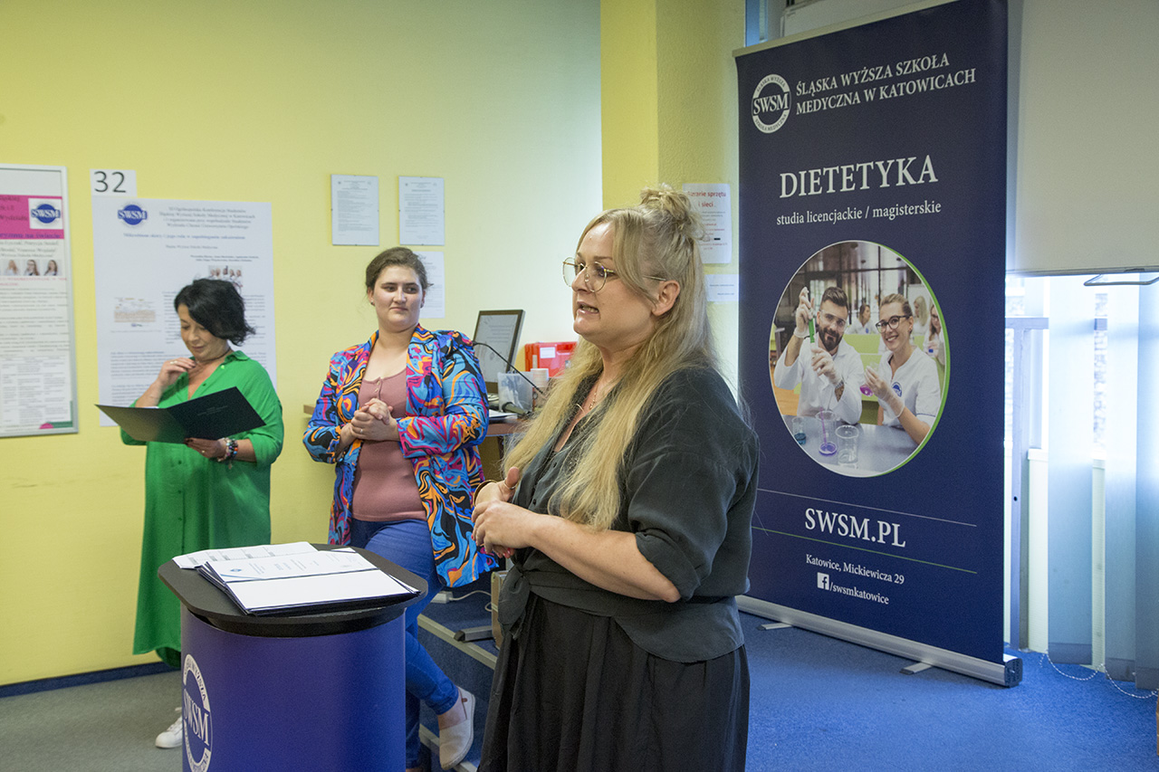 Uczestnicy konferencji mogli podziwiać postery przygotowane przez studentki i studentów SWSM, których prezentacja odbyła się na Auli SWSM. Głosami publiczności zwyciężył POSTER - nr 19 autorstwa: Maji Lament, Sandry Bartosiak, Klaudii Krawczyk i Agaty Mamok