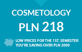 Cosmetology (undergraduate studies: 6 semesters for full-time and part-time studies, possibility to continue education at the graduate level) is the Academy's response to market requirements and the growing interest of potential students in this field. Taking into account future performance of our graduates in the job market, we have created a comprehensive curriculum with emphasis on a great number of practical courses.