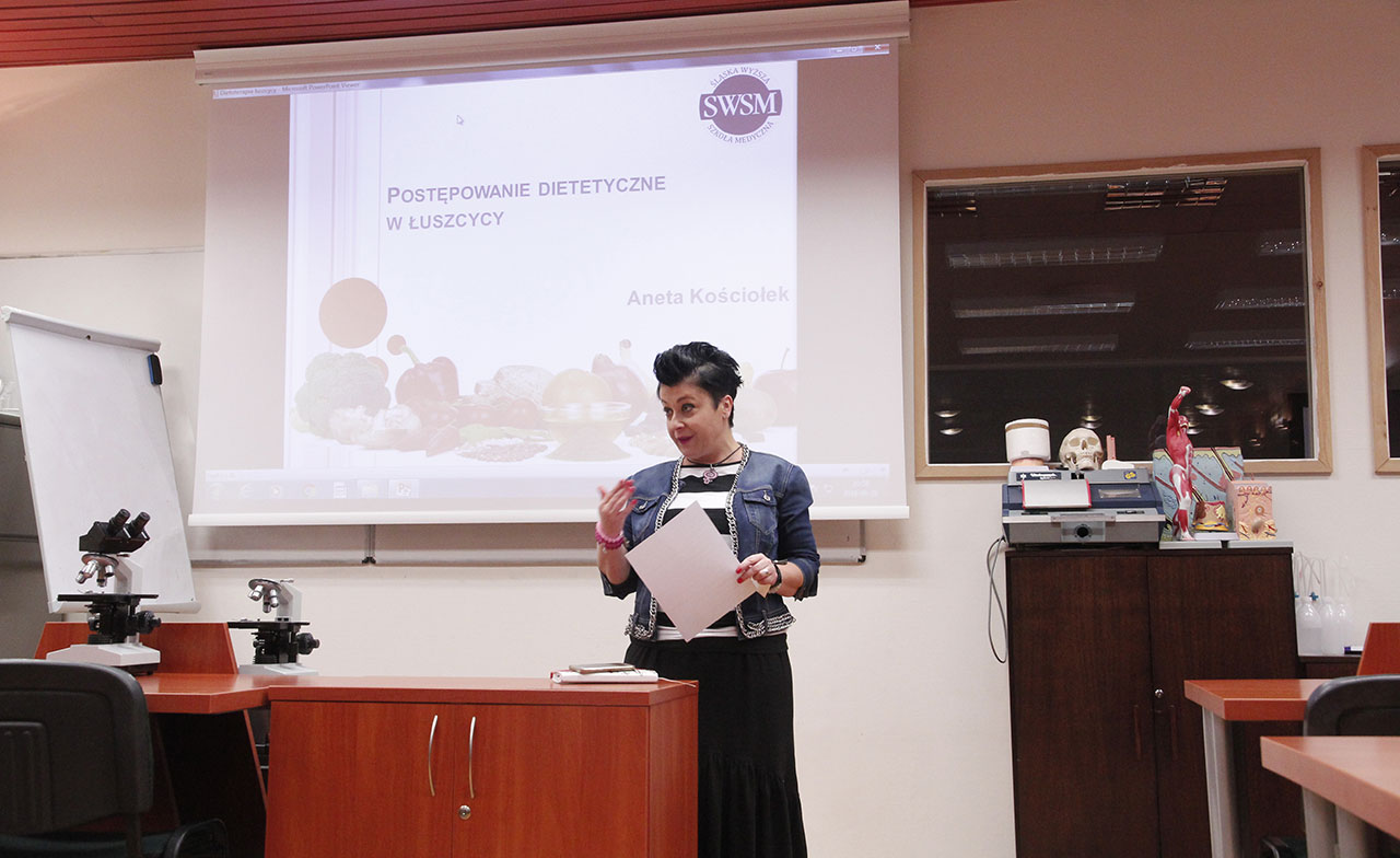 VIII Ogólnopolska Konferencja Studentów Kosmetologii i Dietetyki odbyła się 28 czerwca 2018 roku w Śląskiej Wyższej Szkole Medycznej w Katowicach. Konferencję prowadziła dr hab. Magdalena Rost-Roszkowska, a wykład plenarny zatytułowany „Postępowanie żywieniowe w łuszczycy” wygłosiła dr Aneta Kościołek, wieloletni wykładowca SWSM w Katowicach. Podczas konferencji studenci kilku wyższych uczelni wygłosili referaty związane z najnowszą tematyką dotyczącą dietetyki oraz kosmetologii. Studenci po wysłuchaniu referatów żywo dyskutowali na tematy takie jak niefarmakologiczne metody leczenia zespołu insulinowego, wpływ zaburzeń odżywiania na organizm człowieka, zalecenia żywieniowe w profilaktyce chorób układu sercowo-naczyniowego, czy zastosowania miodu i produktów pochodzenia pszczelego w kosmetologii. Przedstawione zostały także wyniki badań ankietowych oceniających sposób żywienia kobiet ciężarnych stosujących dietę wegańską, osób z cukrzycą typu II, czy nawyków żywieniowych dzieci w wieku przedszkolnym. Studenci zapoznali się również z aspektami interakcji organizmu z mikroorganizmami go zasiedlającymi, czy prozdrowotnym działaniem grzybów Chaga. Na zakończenie zostały studentom rozdane certyfikaty uczestnictwa w Konferencji.
