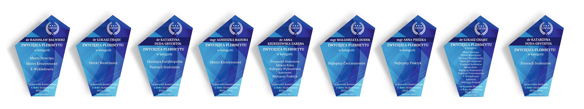 W roku akademickim 2020/2021 Samorząd Studencki SWSM przeprowadził II edycję Plebiscytu na najlepszego dydaktyka. Tym razem postanowiono zebrać oddzielnie głosy od studentów kosmetologii i dietetyki, a do dotychczasowych kategorii: Mistrz Dowcipu, Obiekt Westchnień, Chodząca Encyklopedia, Mistrz Kreatywności, Postrach Studentów, Przyjaciel Studentów, Mówca roku, Najlepszy Wykładowca, Najlepszy Ćwiczeniowiec oraz Autorytet dodano dwie nowe kategorie: e-Wykładowca i Najlepszy Praktyk.