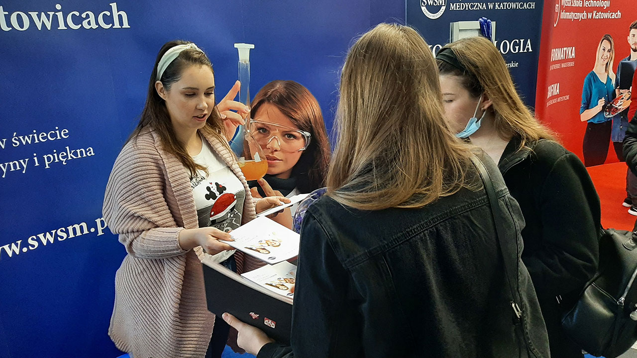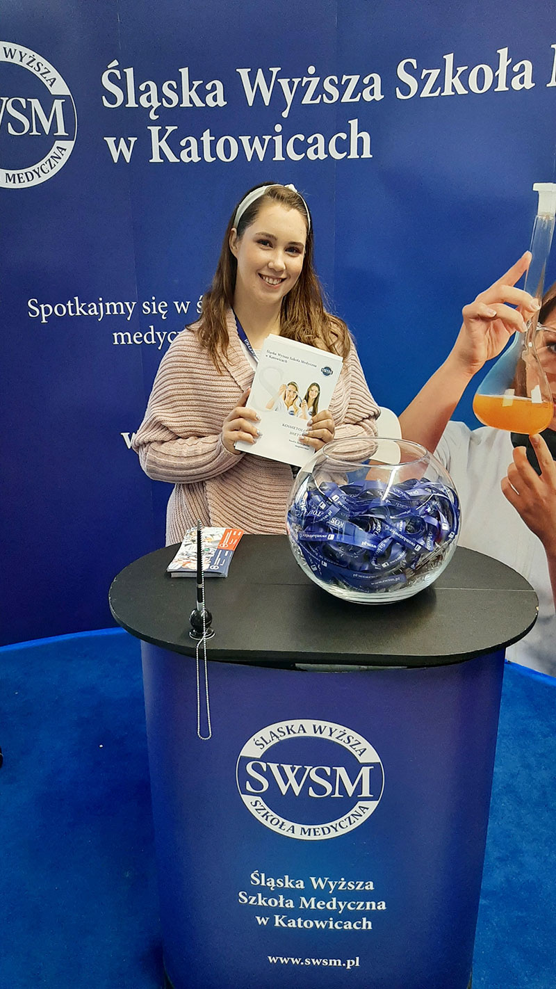 W dniach 22-23 marca 2022 r. Śląska Wyższa Szkoła Medyczna wzięła udział XXIV Ogólnopolskich Targach "EDUKACJA 2022" w katowickim Spodku. Nasza oferta jak zwykle cieszyła się ogromnym zainteresowaniem, a nasi studenci z zaangażowaniem odpowiadali na Wasze pytania dotyczące studiów w SWSM. Mamy nadzieję, że przekonaliśmy Was, że warto postawić na Dietetykę lub Kosmetologię i już wkrótce zobaczymy się w murach Uczelni.