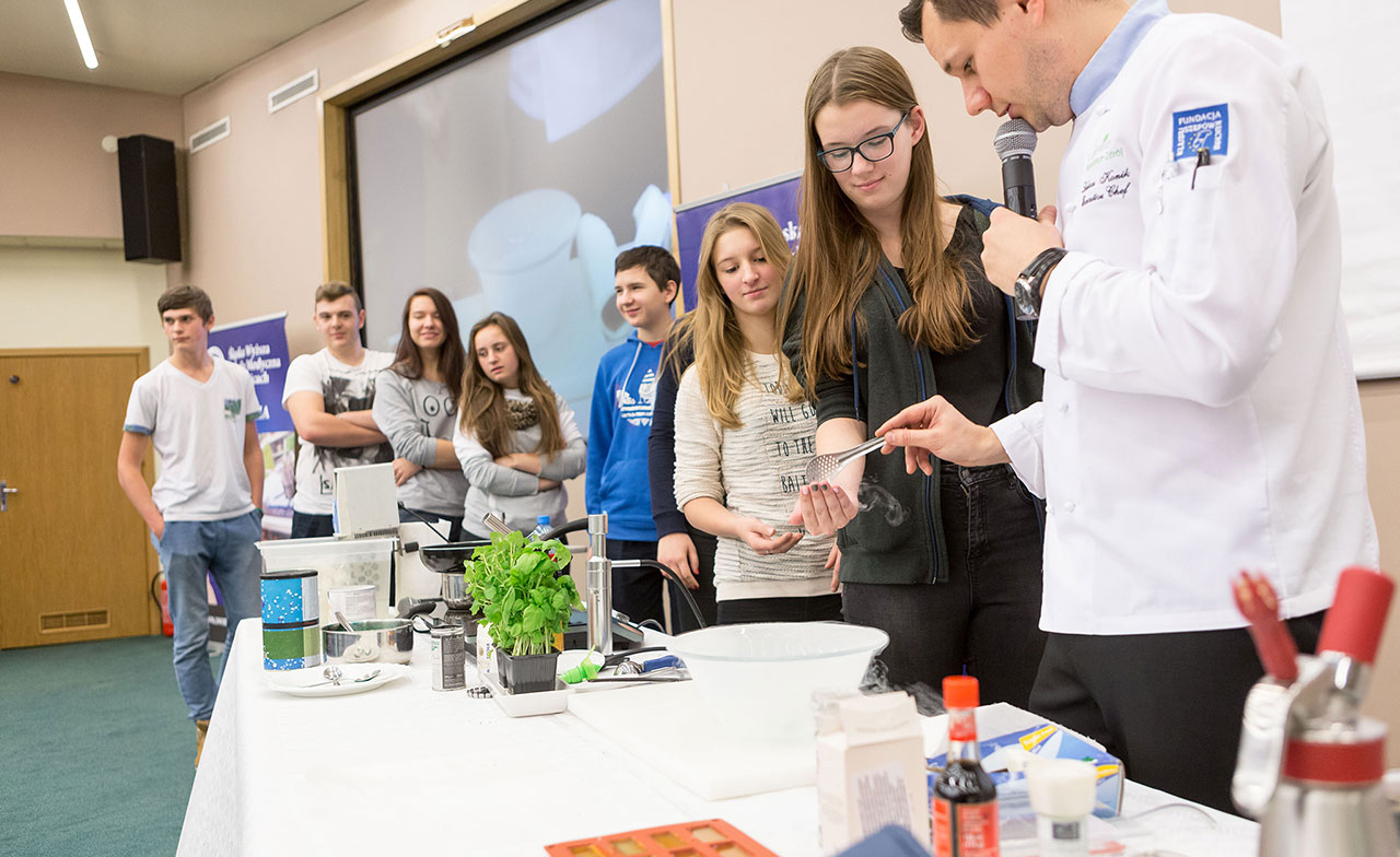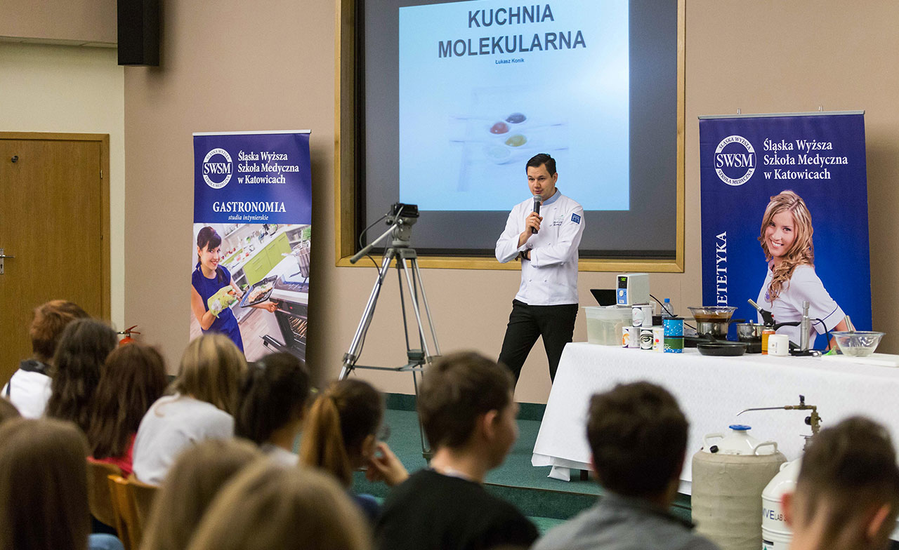 Prowadzącym pokaz będzie Łukasz Konik, kucharz „naukowiec”, członek elitarnej grupy Fundacji Klubu Szefów Kuchni, współpracownik Warszawskiego Instytutu Chemii i Fizyki PAN, poszukiwacz niezwykłych smaków.