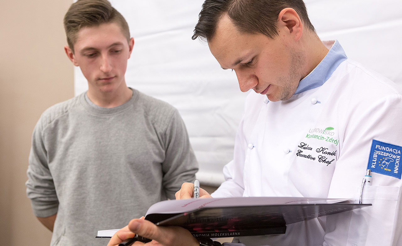 Łukasz Konik jest najmłodszym Szefem Kuchni w prestiżowym gronie Fundacji Klubu Szefów Kuchni zrzeszającej 26 najlepszych Szefów Kuchni w Polsce. Ukończył Wyższą Szkołę Hotelarstwa i Gastronomii w Poznaniu, a przygodę z kuchnią rozpoczął w Technikum Gastronomicznym w Gorzowie Wielkopolskim. Doświadczenie zawodowe zdobywał w najlepszych restauracjach i hotelach w Polsce oraz zagranicą.
