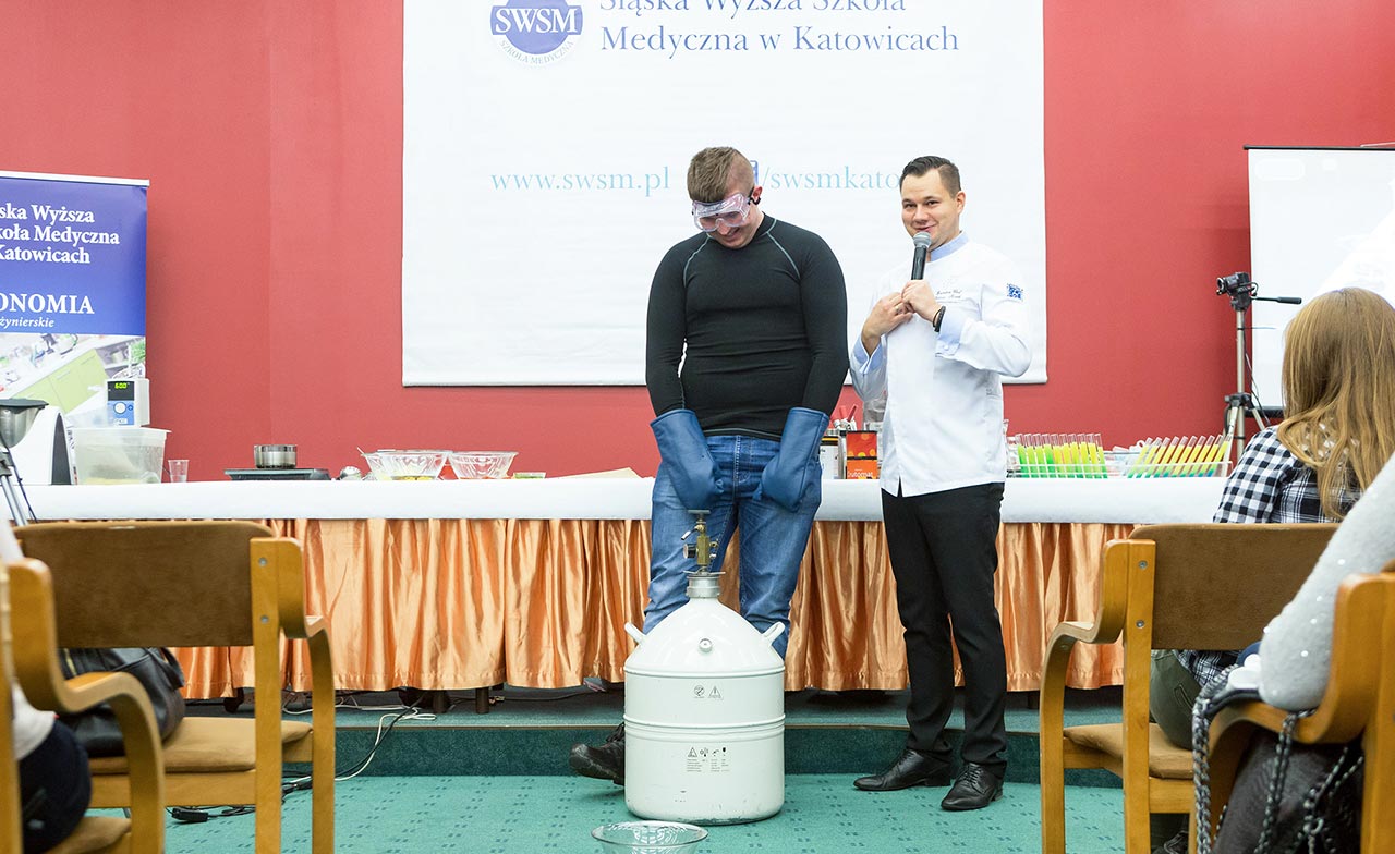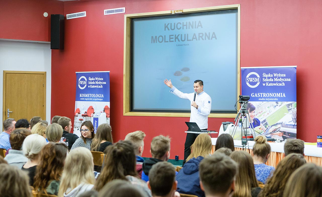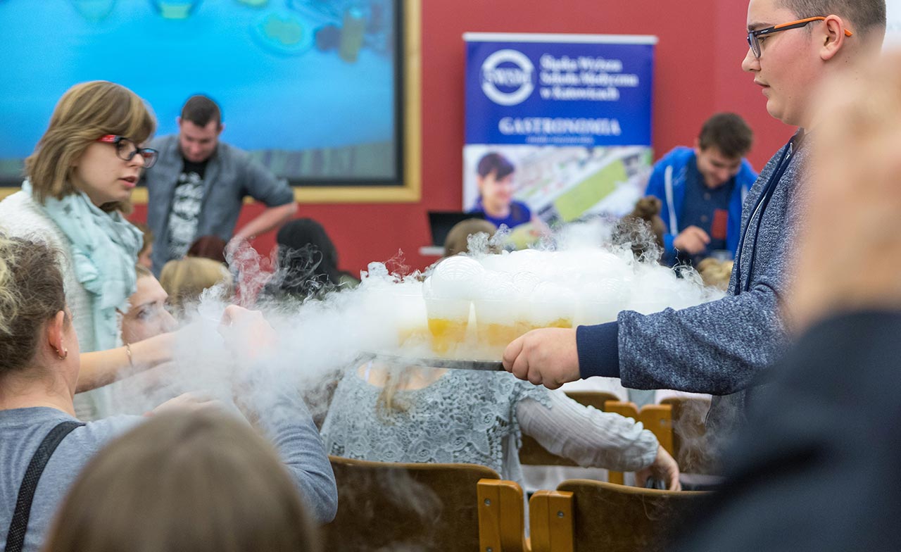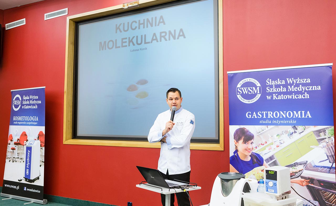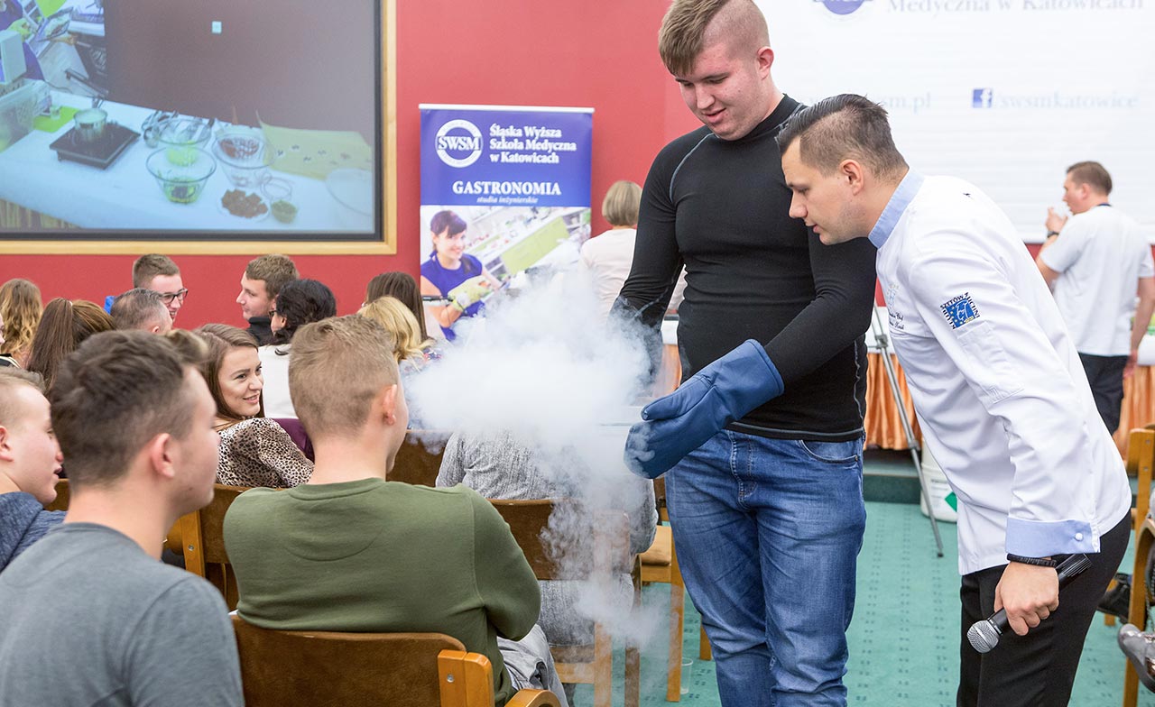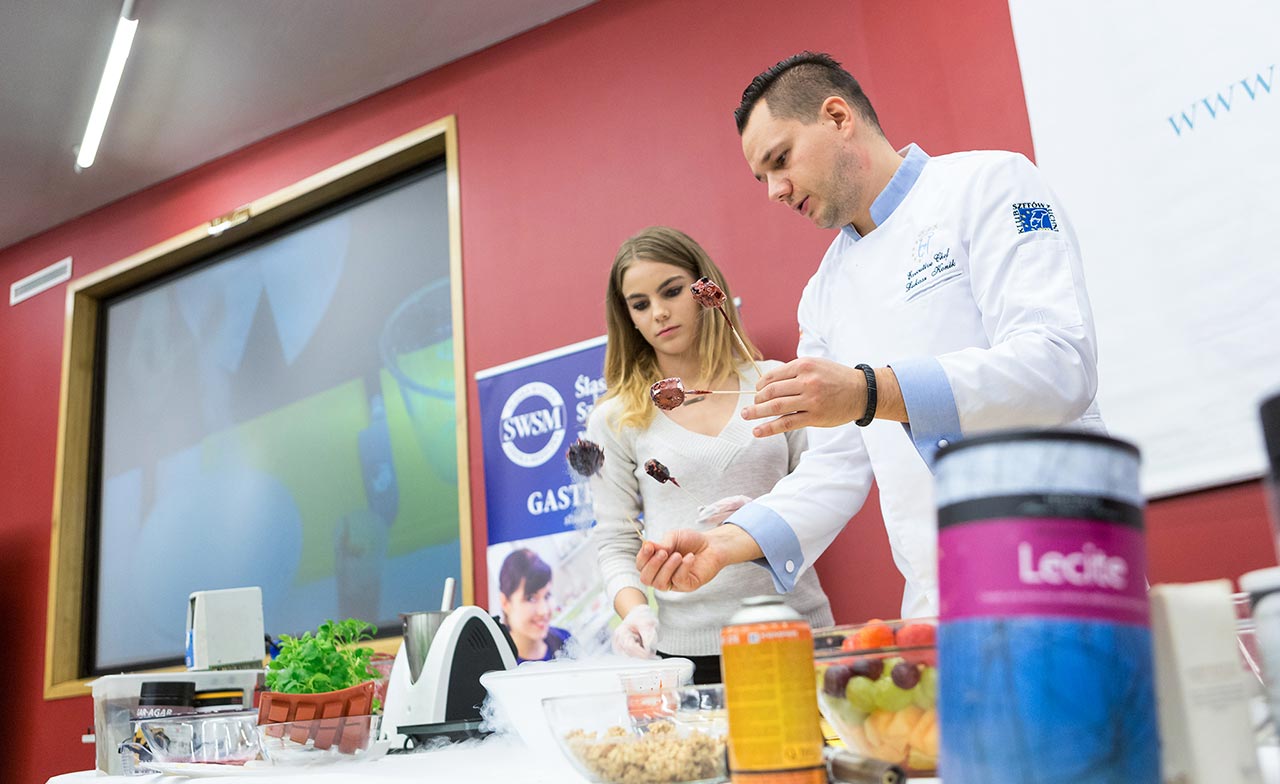 W dniach 14 i 15 listopada gościliśmy w naszych murach pana Łukasza Konika, który poprowadził mrożący krew w żyłach (i nie tylko w nich) pokaz kuchni molekularnej. Cykliczne spotkania z panem Łukaszem cieszą się niesłabnącą popularnością i stanowią już stały punkt programu w ofercie SWSM.
