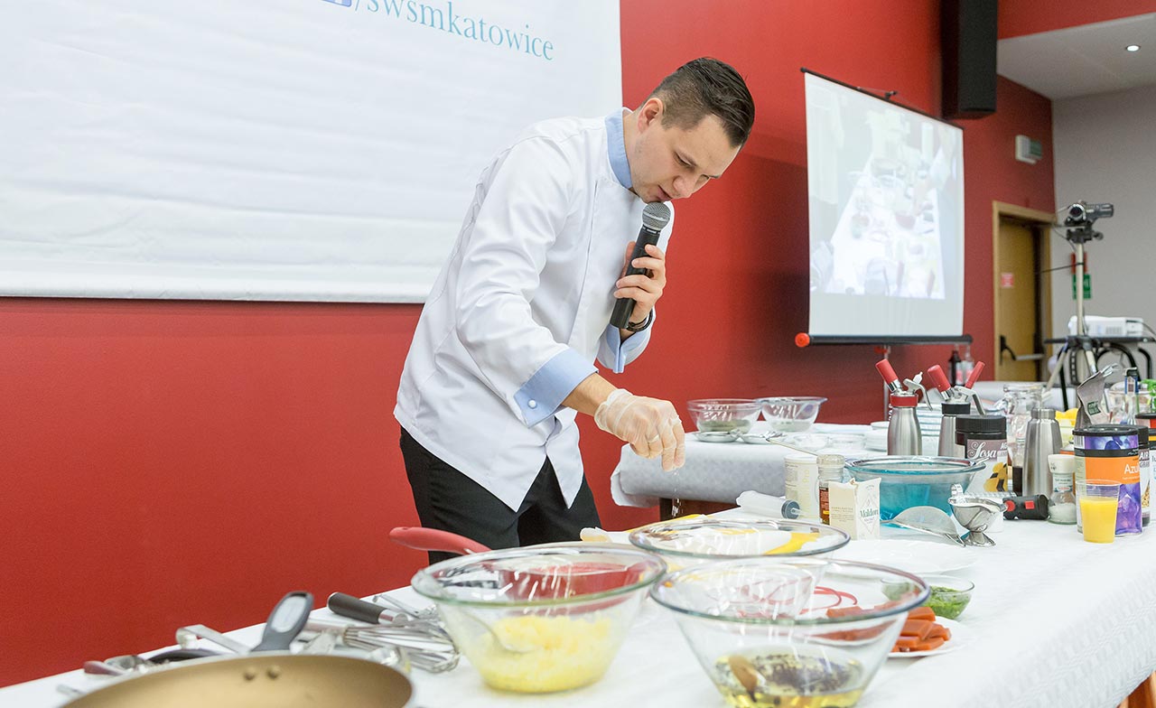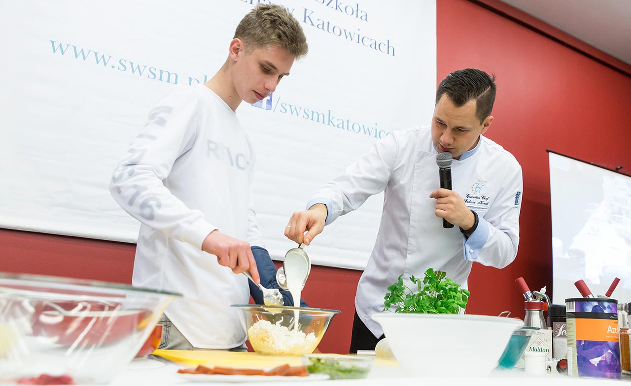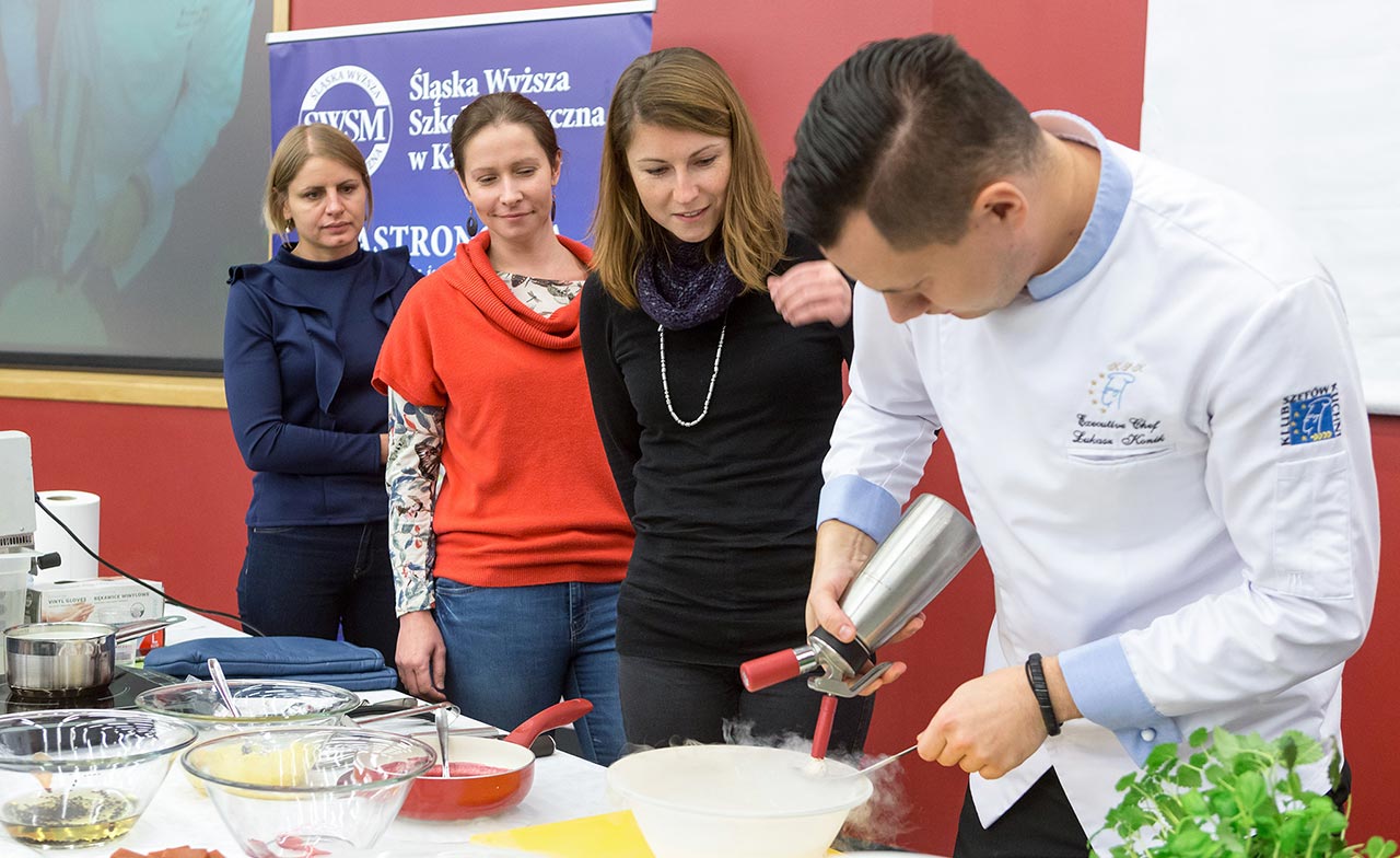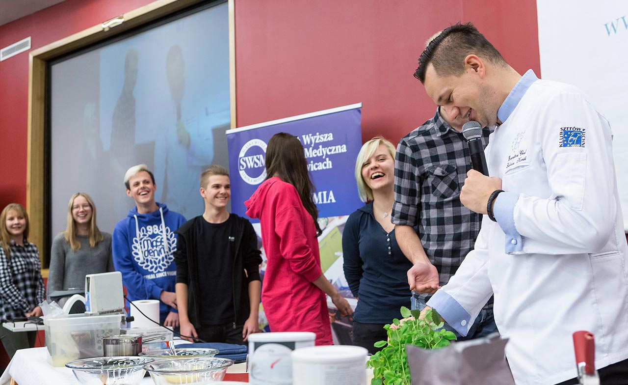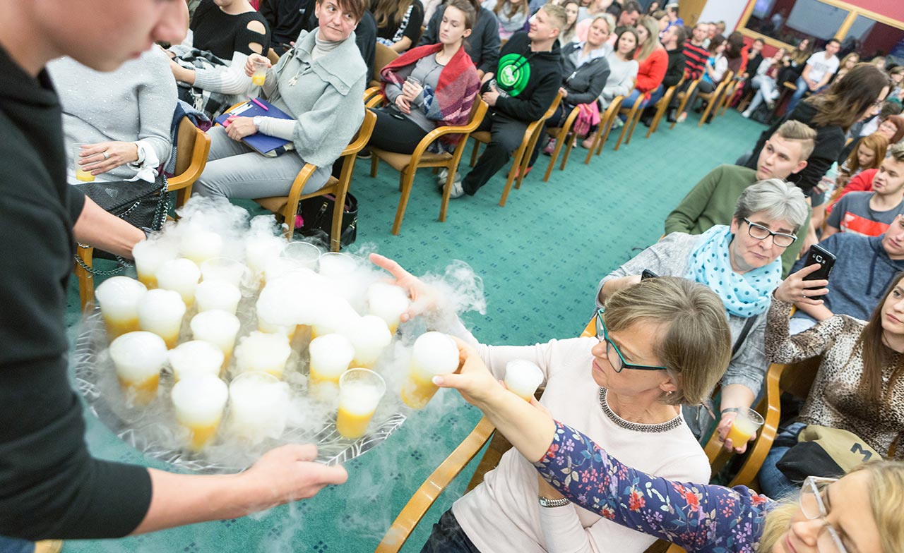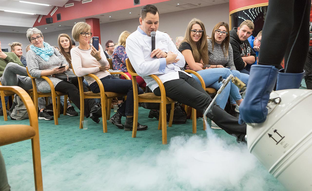 W dniach 14 i 15 listopada gościliśmy w naszych murach pana Łukasza Konika, który poprowadził mrożący krew w żyłach (i nie tylko w nich) pokaz kuchni molekularnej. Cykliczne spotkania z panem Łukaszem cieszą się niesłabnącą popularnością i stanowią już stały punkt programu w ofercie SWSM.