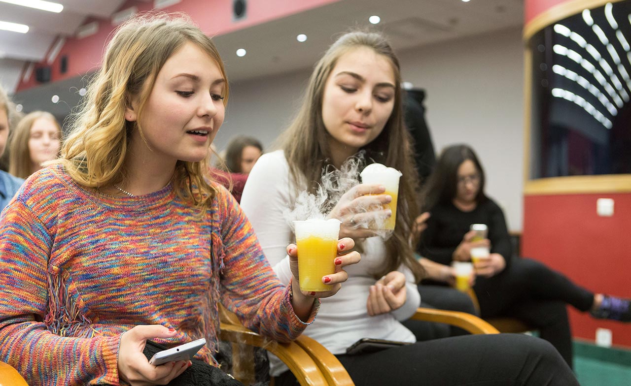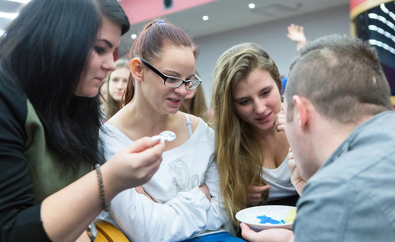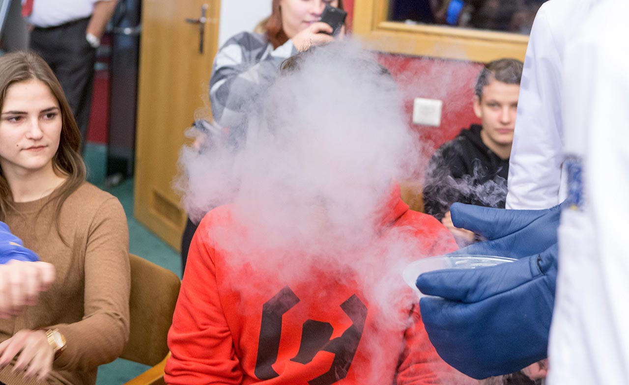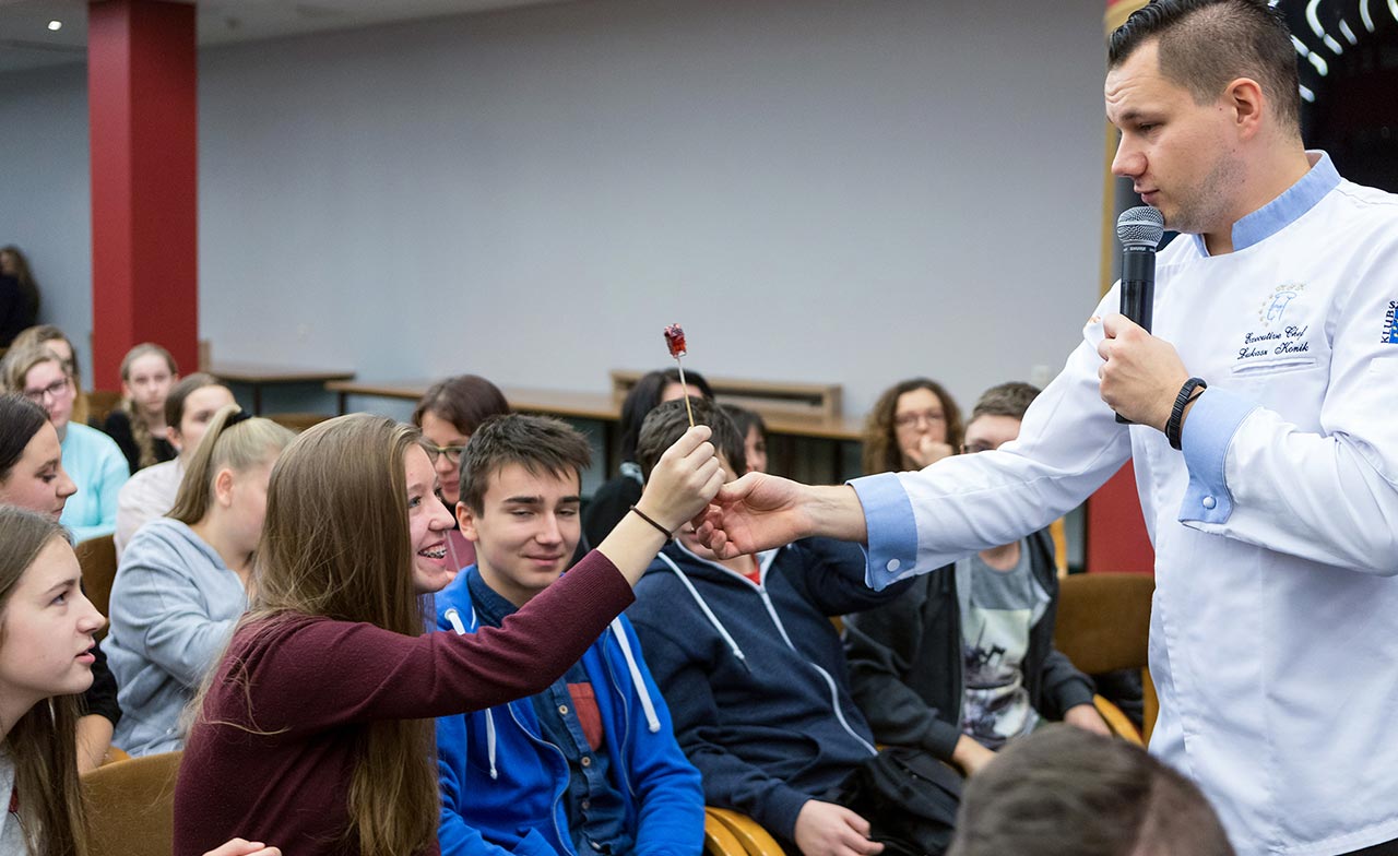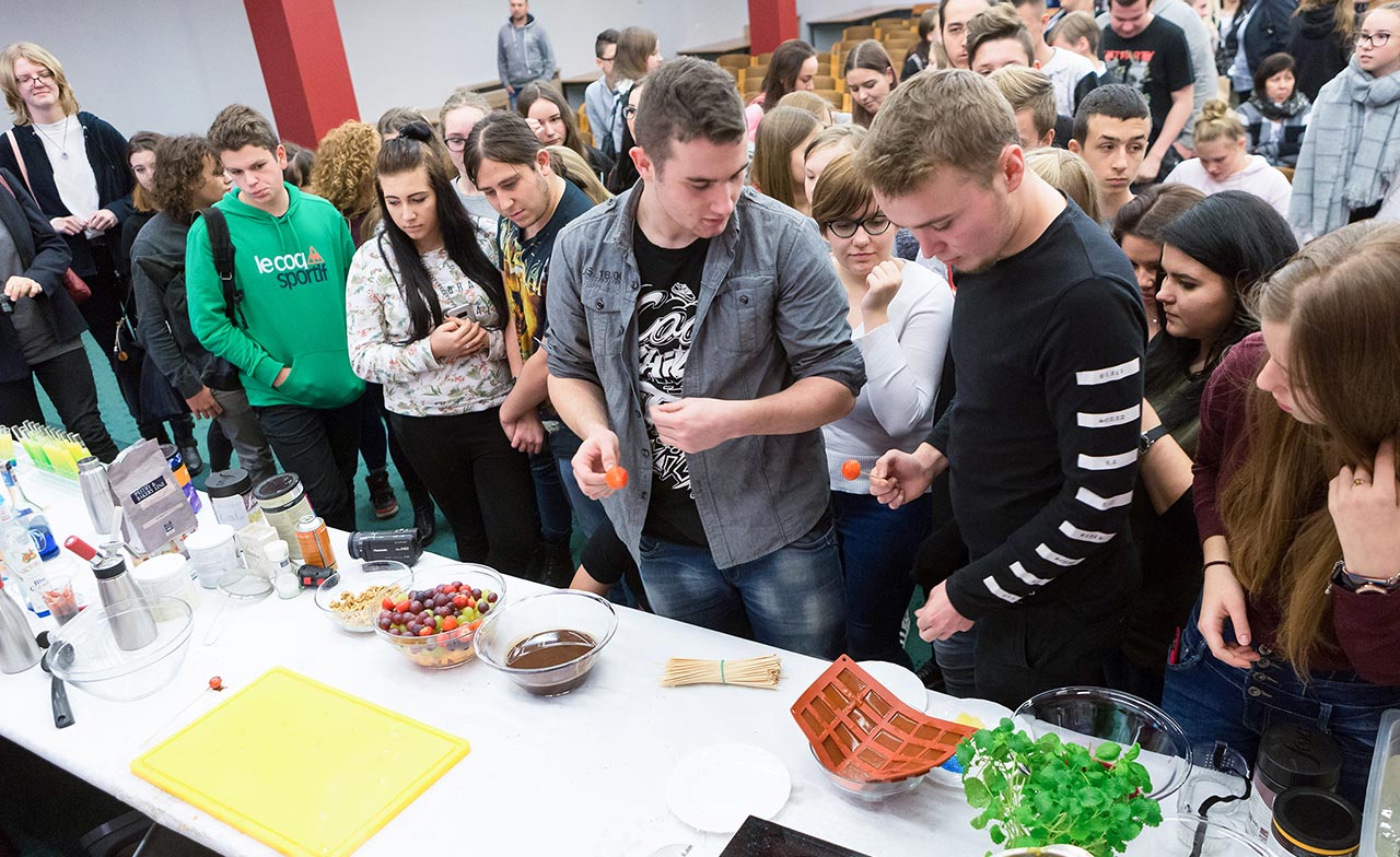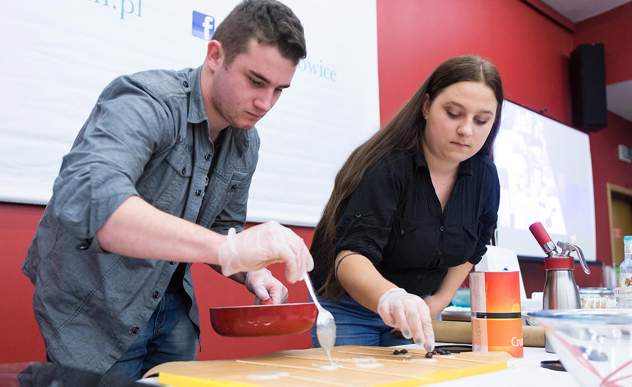 W dniach 14 i 15 listopada gościliśmy w naszych murach pana Łukasza Konika, który poprowadził mrożący krew w żyłach (i nie tylko w nich) pokaz kuchni molekularnej. Cykliczne spotkania z panem Łukaszem cieszą się niesłabnącą popularnością i stanowią już stały punkt programu w ofercie SWSM.