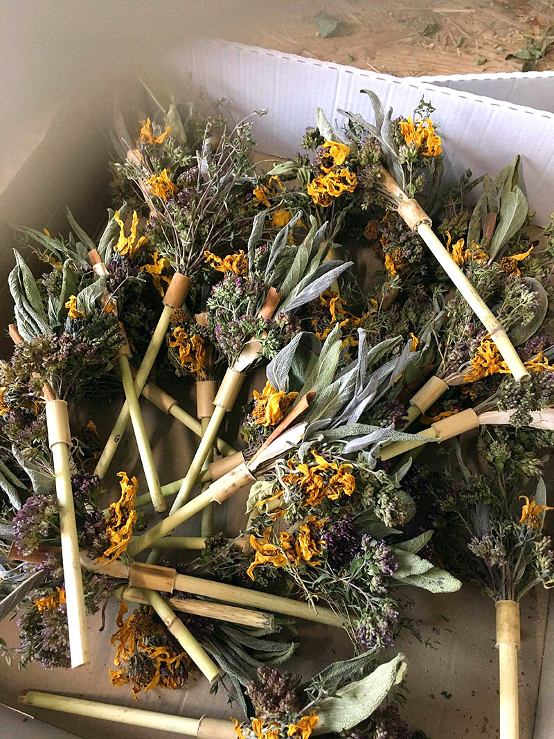 pozyskiwanie surowców – zbiór surowców występujących na terenie ogrodu, przetwarzanie surowców olejowych, tłoczenie olei,