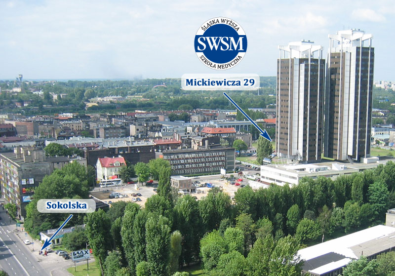 Mickiewicza 29: N 50°15.803', E 019°00.813'