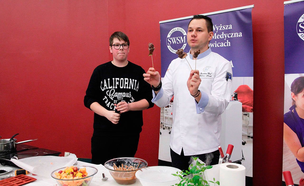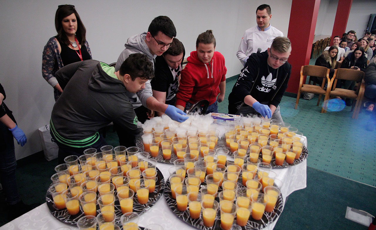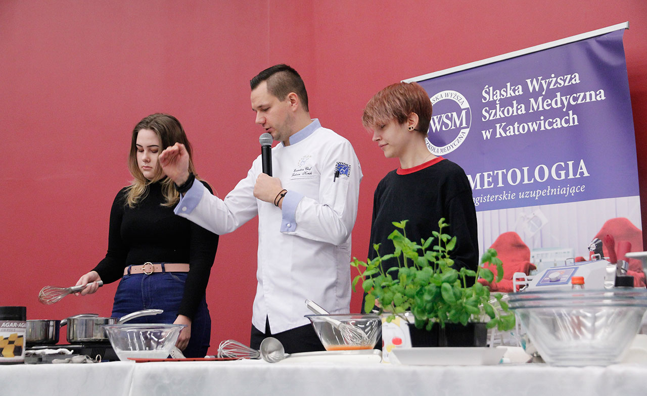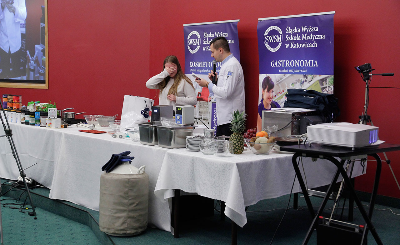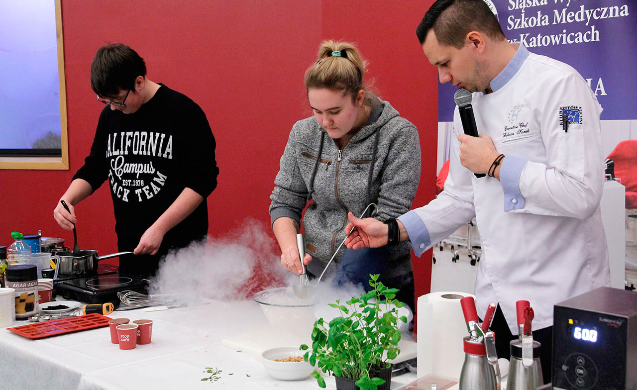 W dniach 9 i 10 stycznia 2019 gościliśmy w naszych murach pana Łukasza Konika, który poprowadził mrożący krew w żyłach (i nie tylko w nich) pokaz kuchni molekularnej. Cykliczne spotkania z panem Łukaszem cieszą się niesłabnącą popularnością i stanowią już stały punkt programu w ofercie SWSM.