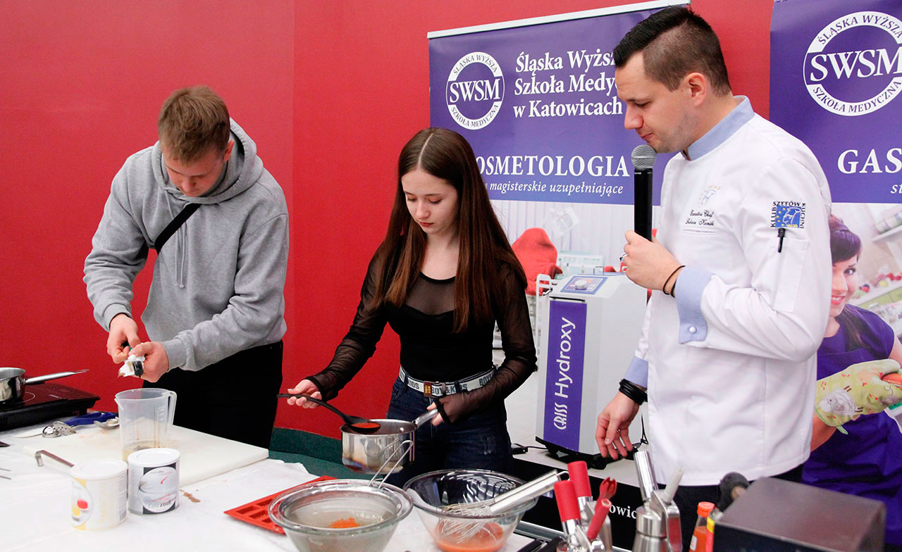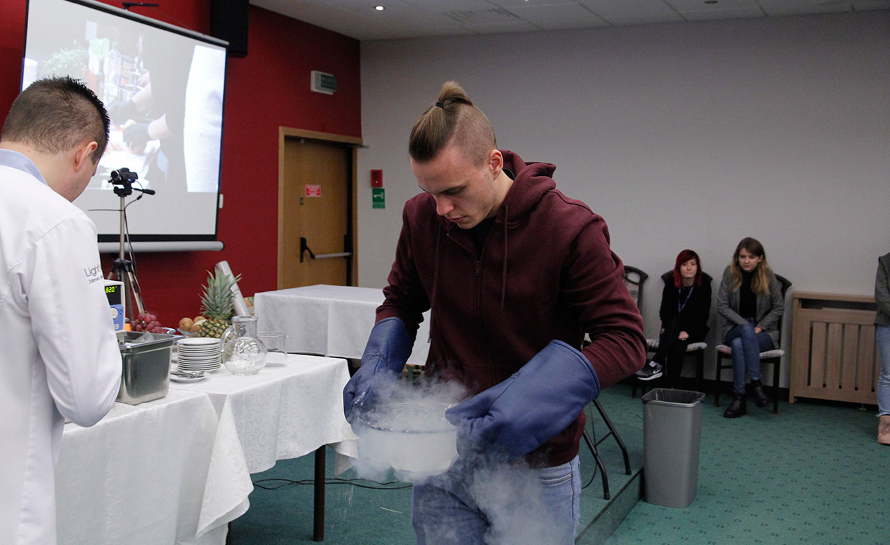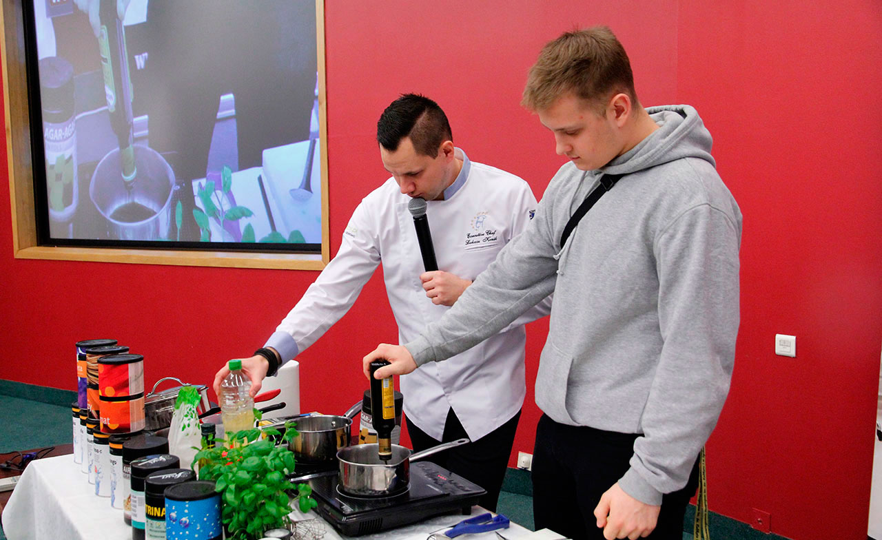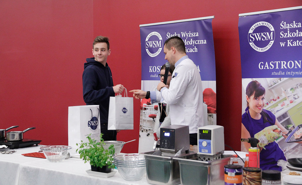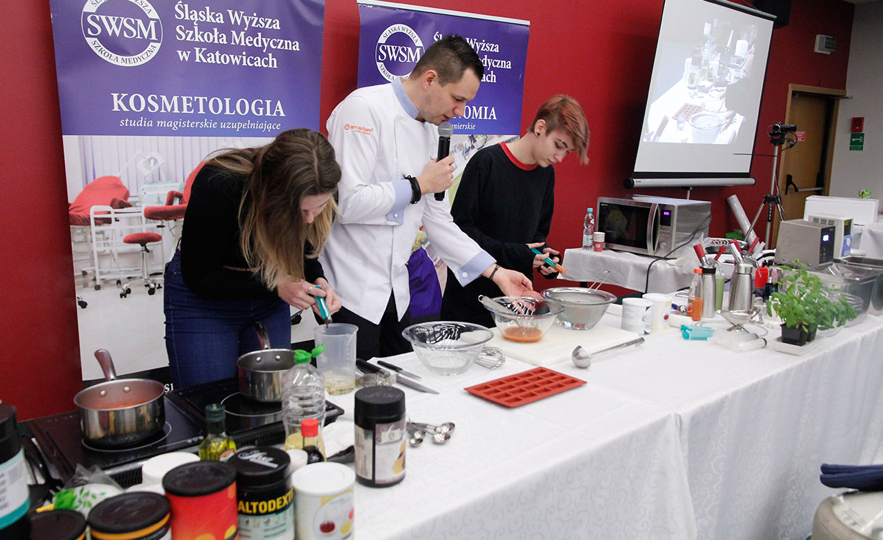 W dniach 9 i 10 stycznia 2019 gościliśmy w naszych murach pana Łukasza Konika, który poprowadził mrożący krew w żyłach (i nie tylko w nich) pokaz kuchni molekularnej. Cykliczne spotkania z panem Łukaszem cieszą się niesłabnącą popularnością i stanowią już stały punkt programu w ofercie SWSM.