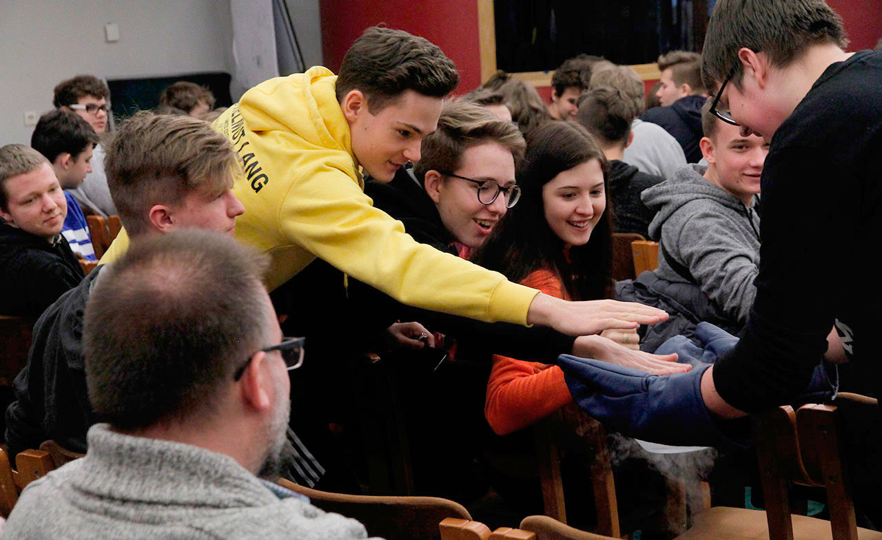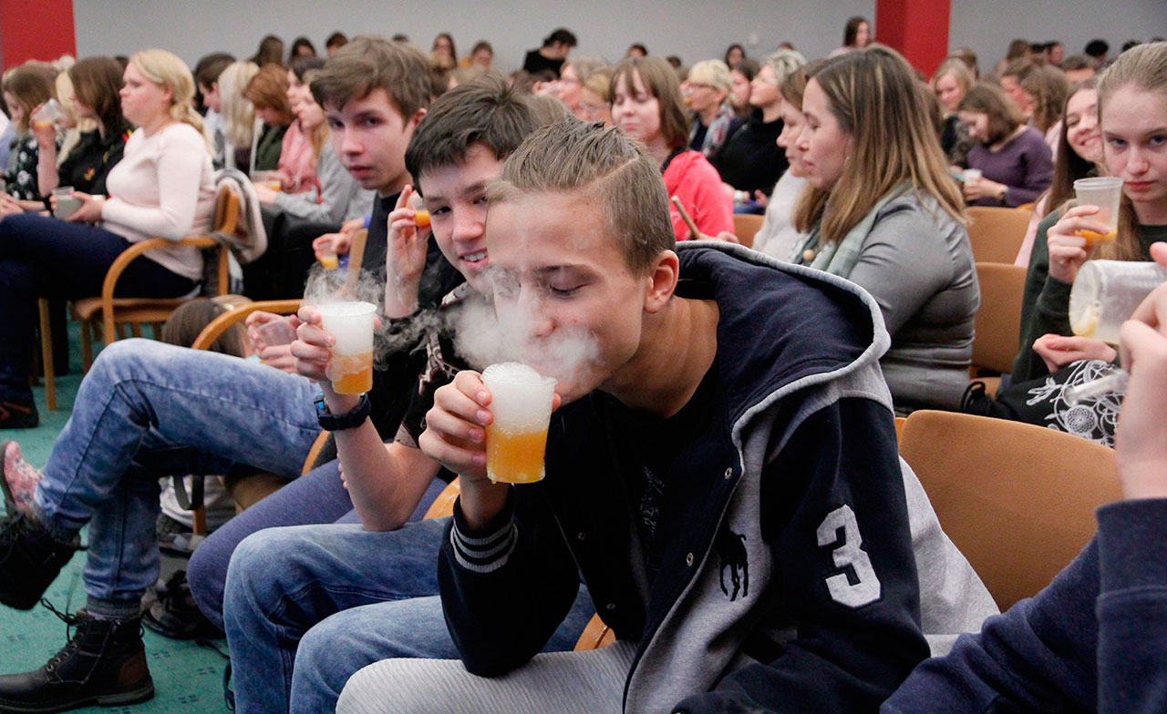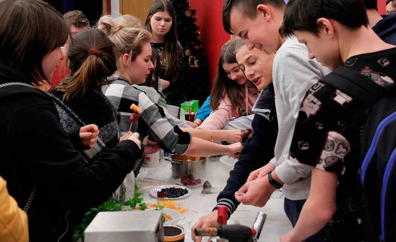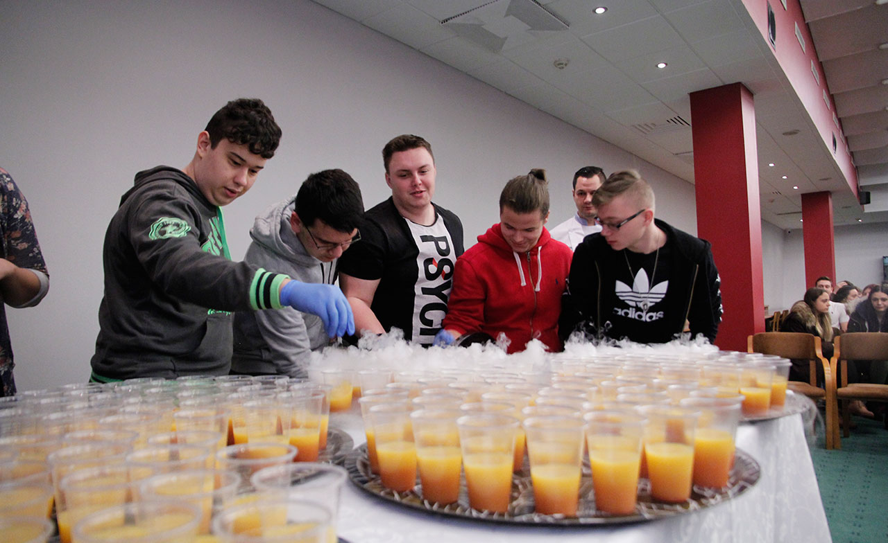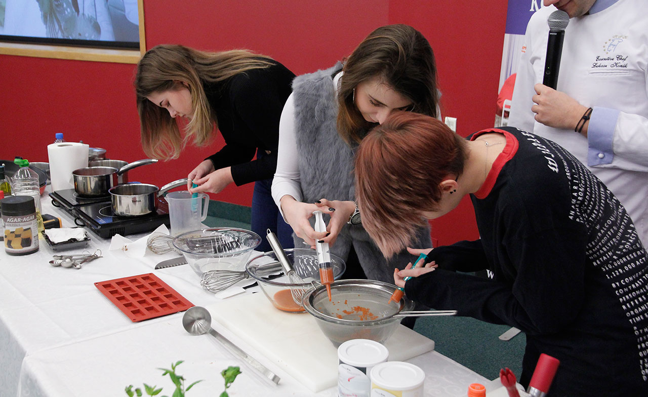 W dniach 9 i 10 stycznia 2019 gościliśmy w naszych murach pana Łukasza Konika, który poprowadził mrożący krew w żyłach (i nie tylko w nich) pokaz kuchni molekularnej. Cykliczne spotkania z panem Łukaszem cieszą się niesłabnącą popularnością i stanowią już stały punkt programu w ofercie SWSM.