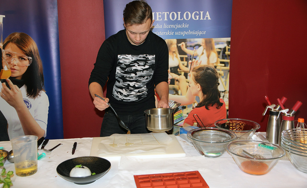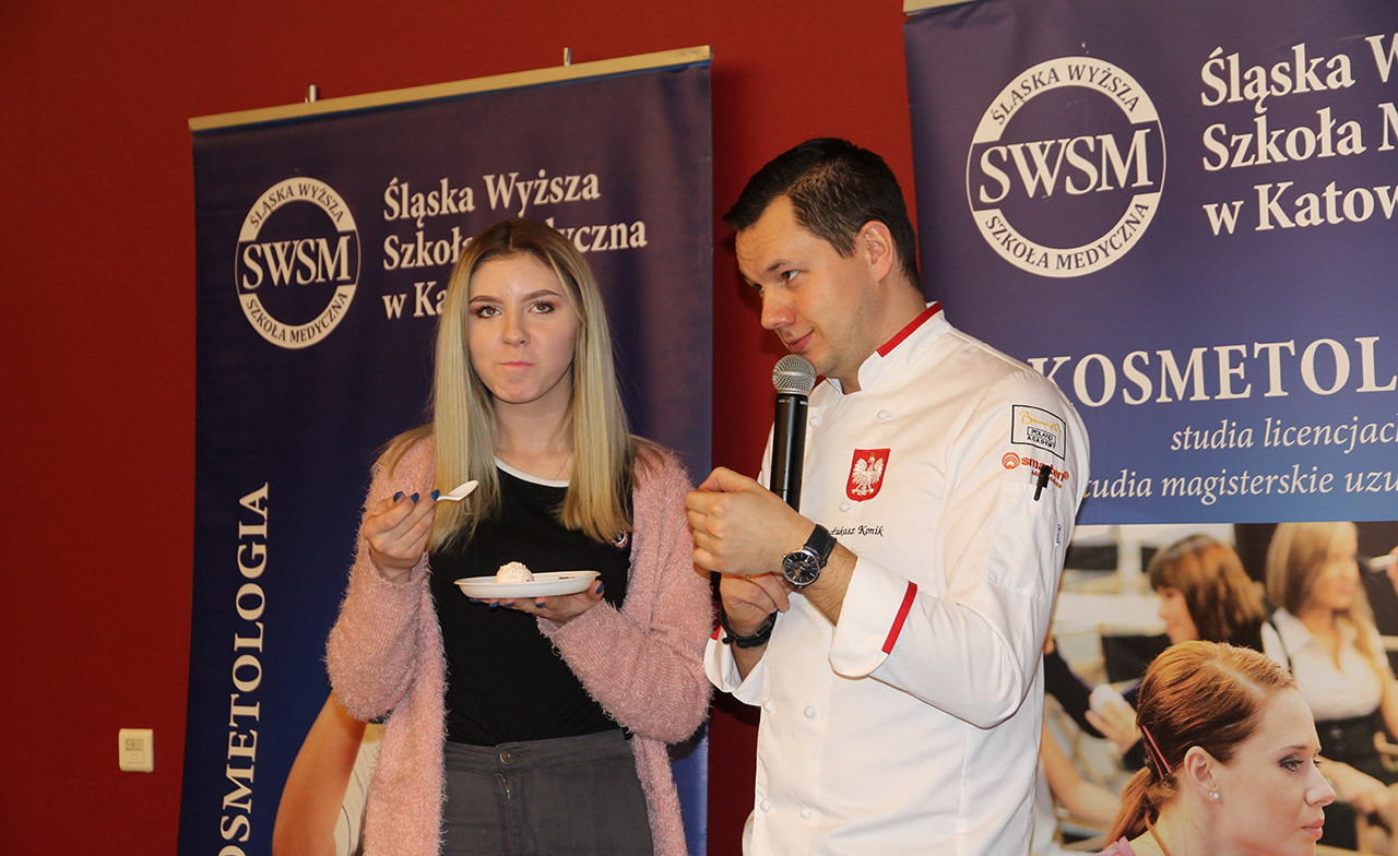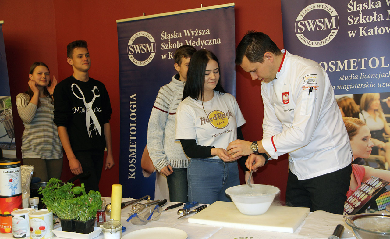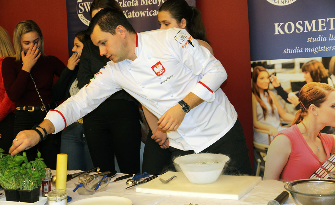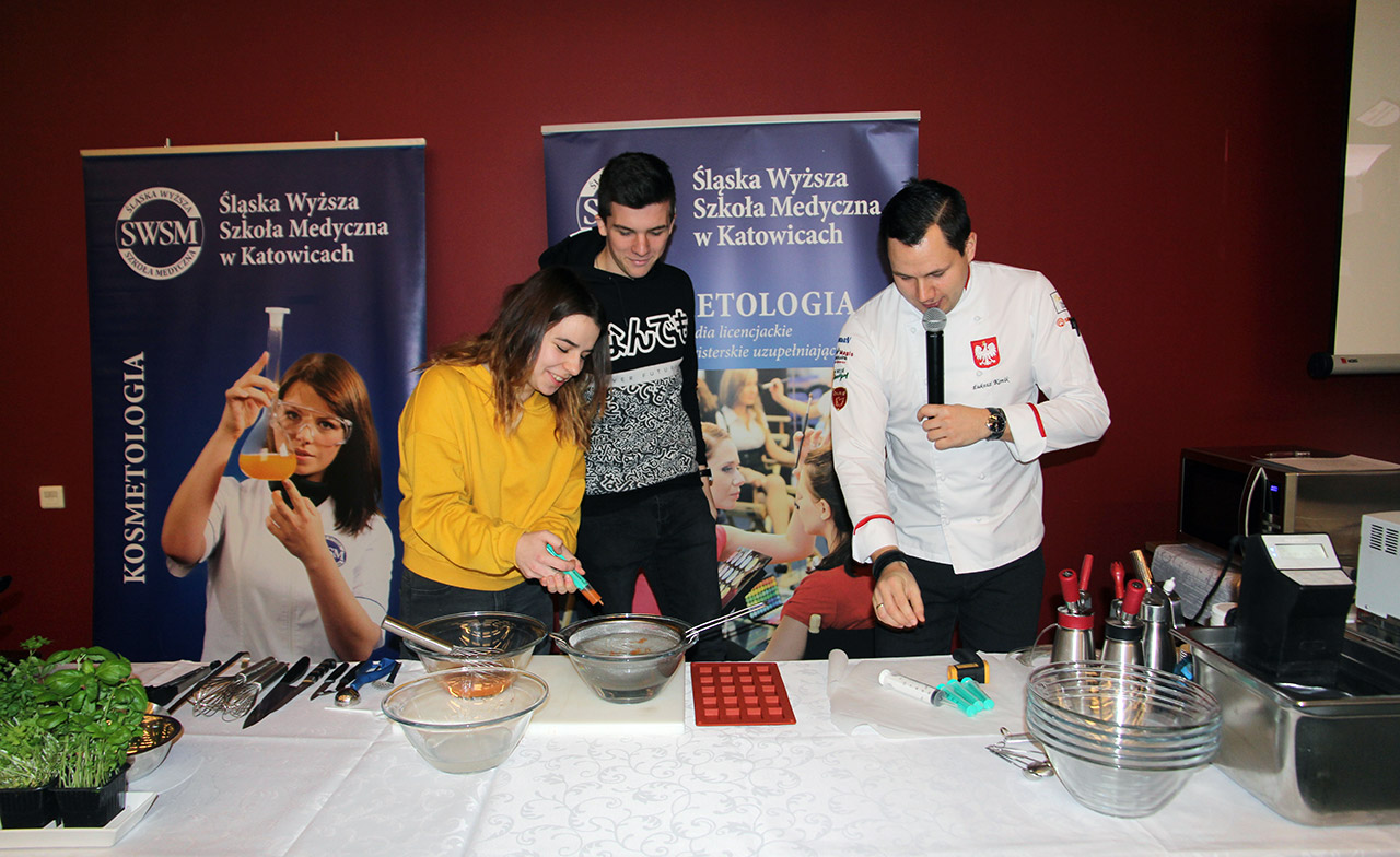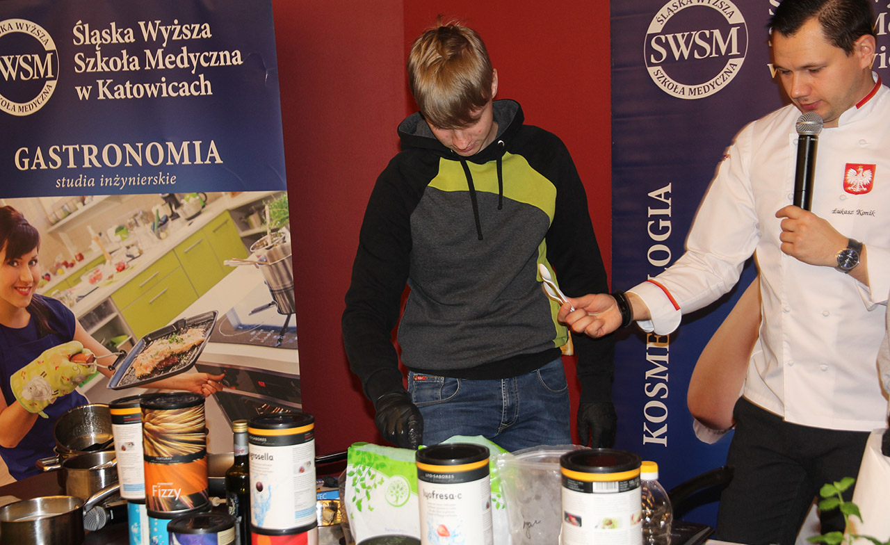 Za nami dwa pasjonujące dni spotkań kulinarnych z mistrzem Łukaszem Konikiem i jego konikiem, czyli kuchnią molekularną. Dziękujemy za tłumne przybycie oraz aktywny udział w naszym pokazie. To była wyjątkowo aktywna i zdolna publiczność!!! Mamy nadzieję, że udało nam się zafascynować Was zagadnieniami ze świata gastronomii i dietetyki jakich wcześniej nie doświadczyliście w swoim życiu. Chcecie więcej? Zapraszamy na studia do Śląskiej Wyższej Szkoły Medycznej w Katowicach.