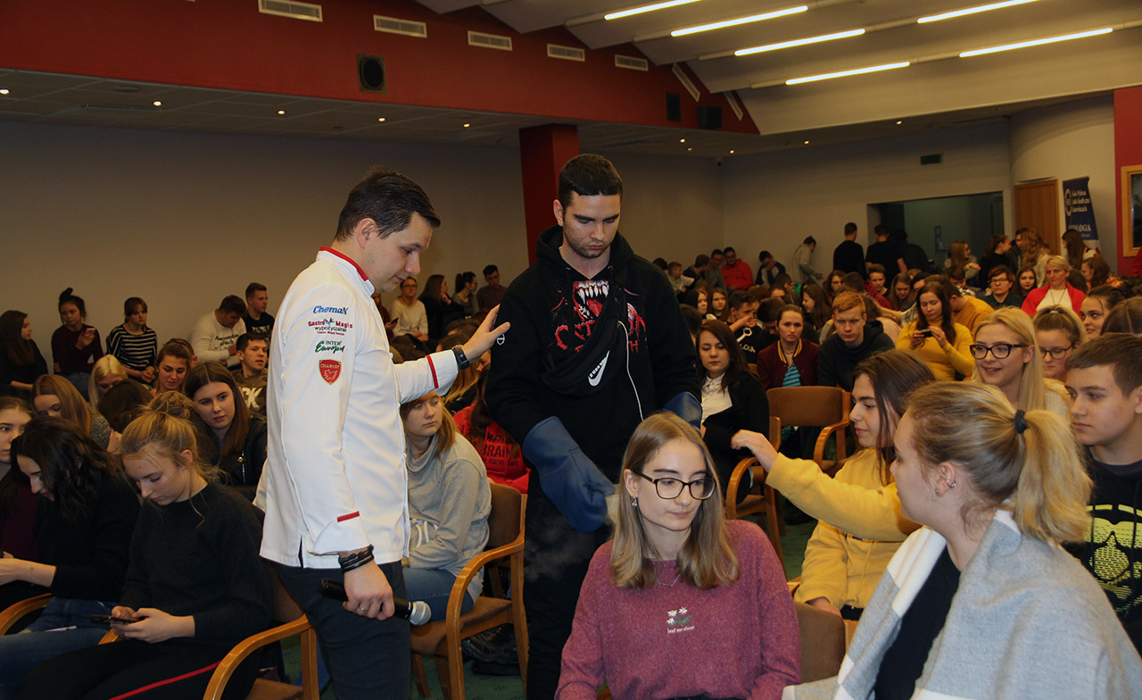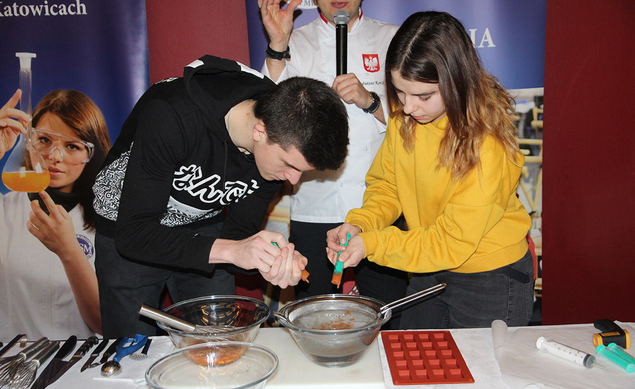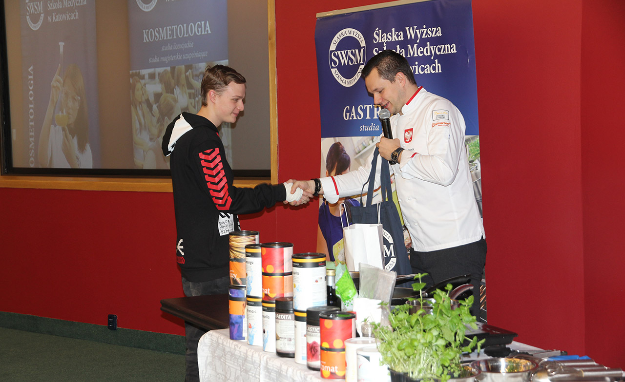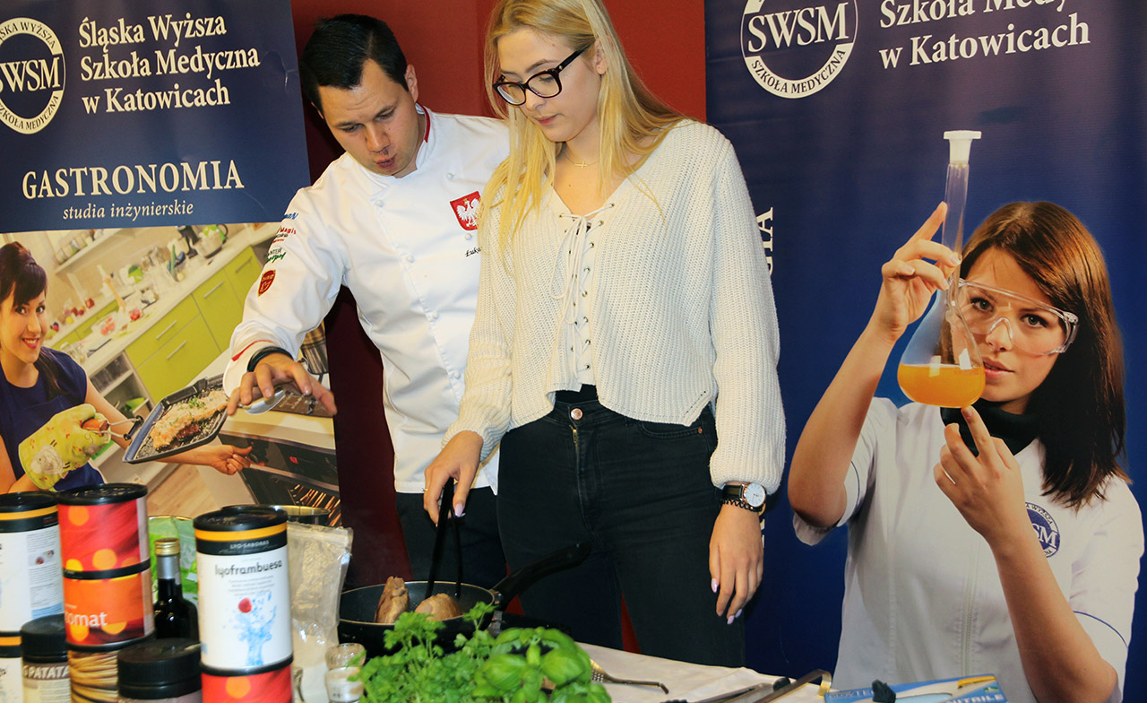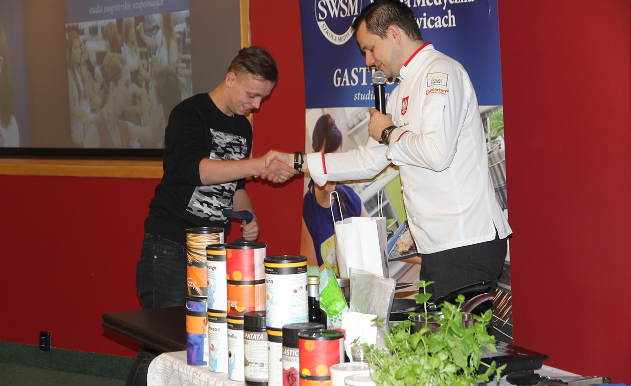 Za nami dwa pasjonujące dni spotkań kulinarnych z mistrzem Łukaszem Konikiem i jego konikiem, czyli kuchnią molekularną. Dziękujemy za tłumne przybycie oraz aktywny udział w naszym pokazie. To była wyjątkowo aktywna i zdolna publiczność!!! Mamy nadzieję, że udało nam się zafascynować Was zagadnieniami ze świata gastronomii i dietetyki jakich wcześniej nie doświadczyliście w swoim życiu. Chcecie więcej? Zapraszamy na studia do Śląskiej Wyższej Szkoły Medycznej w Katowicach.