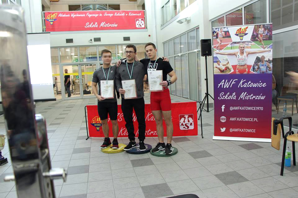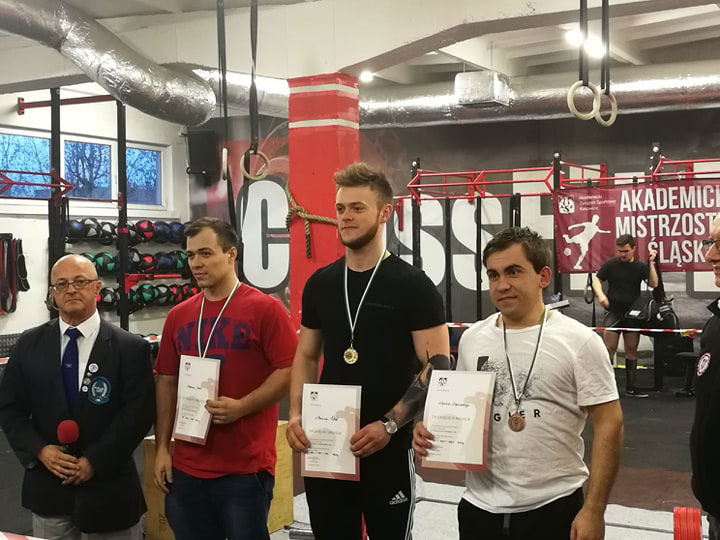 Miło nam poinformować, że nasi studenci Marcin Oleś (1 miejsce) oraz Rafał Barczyk (2 miejsce) wywalczyli medale podczas Akademickich Mistrzostw Śląska w dyscyplinie Trójbój siłowy, każdy w swojej kategorii wagowej. Zawody odbyły się 10 marca 2019 w Bytomiu.